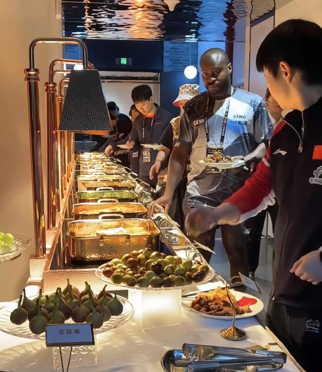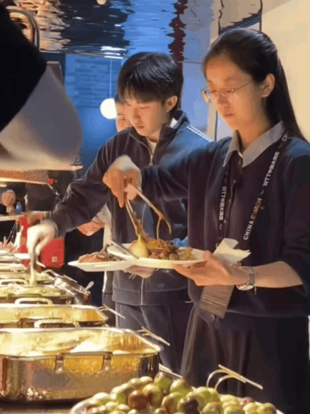 王楚钦身边的美女是谁? 我要她全部资料。 貌似不是运动员, 不过身高气质都很好! 小莎莎在忙着抢烤鸭呢? 完全没注意身边的事。 莎莎一边卡住位, 一边和厨师说: 快点快点, 这个位置我最多坚守5分钟! 莎莎对比赛期间饮食不忌讳, 吃完烤鸭, 还再加点面条填填缝, 一旁的阿鲁纳都吃惊了[呲牙]