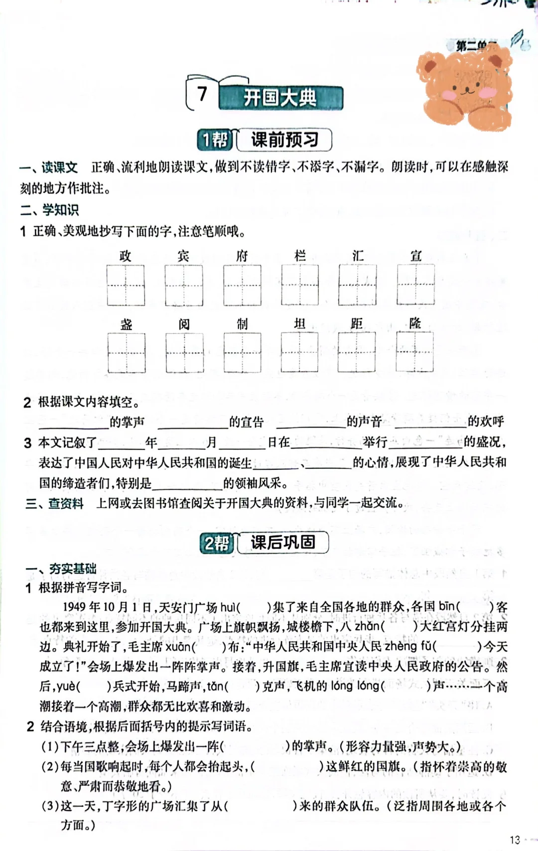 1.会写“政、府”等字,会写“政府、外宾”等词语。