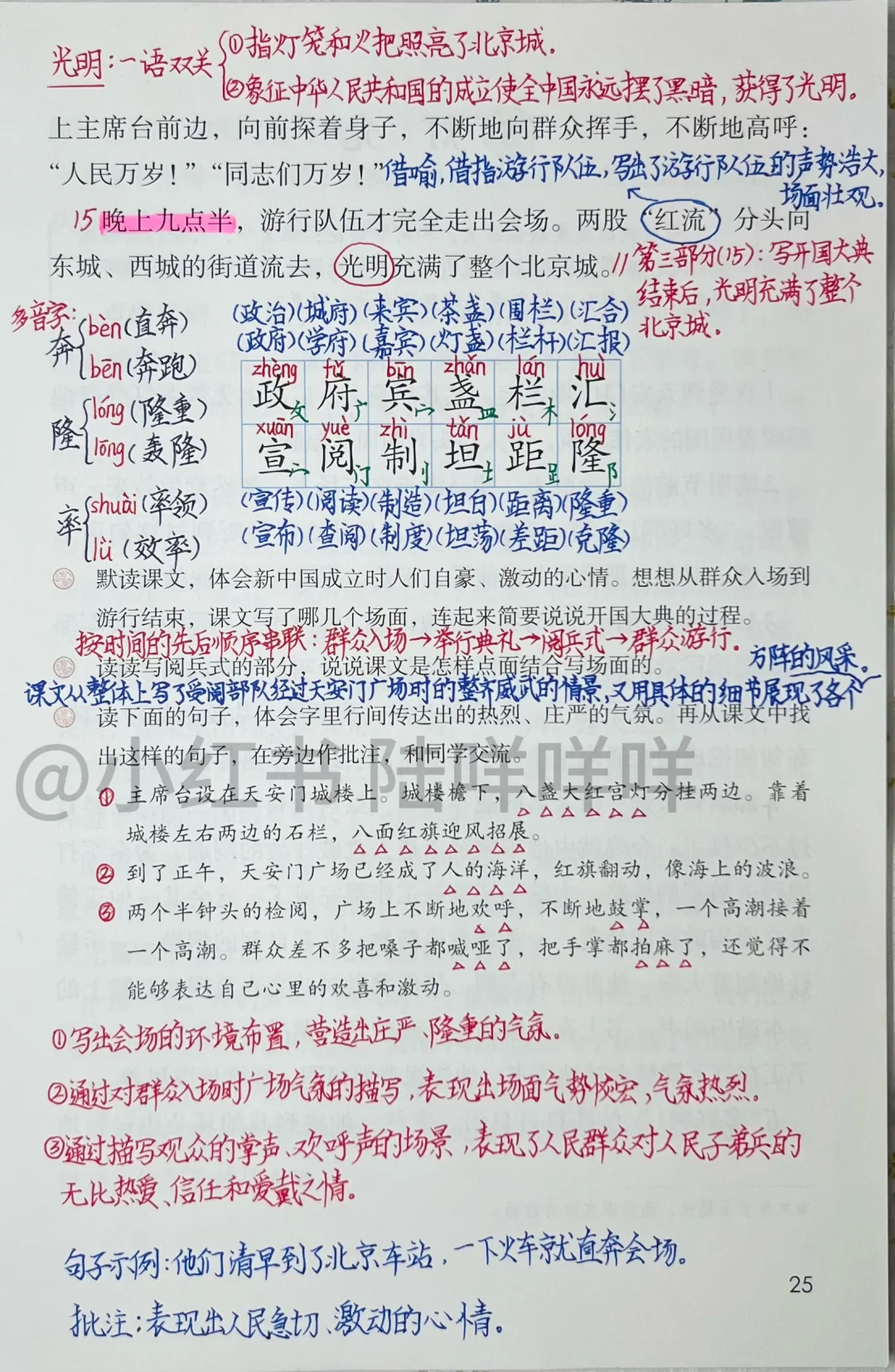 3. 了解开国大典盛况,结合重点语句,感受热烈、庄重的气氛,体会人们自豪、激动的心情,激发爱国情怀。(难点)