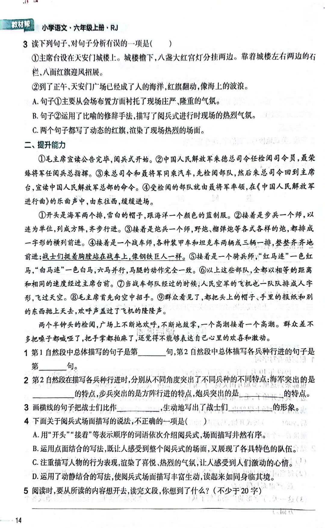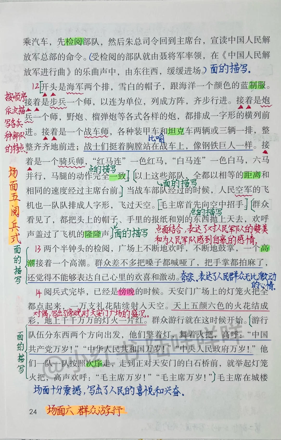 2.体会“阅兵式”这个场面中点面结合的描写方法。(重点)