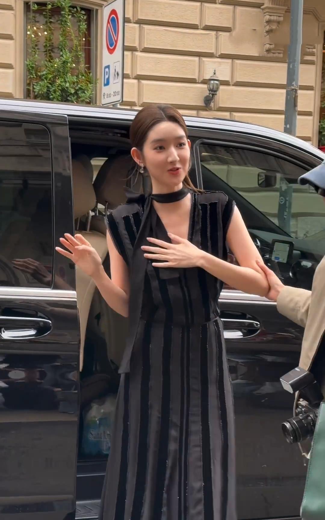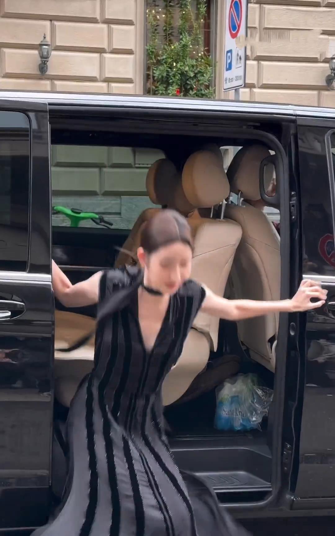 王玉雯下车摔跤,秦岚下车这张图的含金量又高了! 米兰时装周,王玉雯从车上下来的时