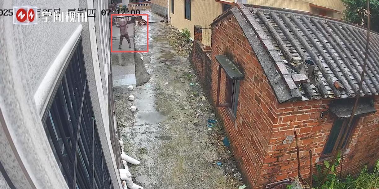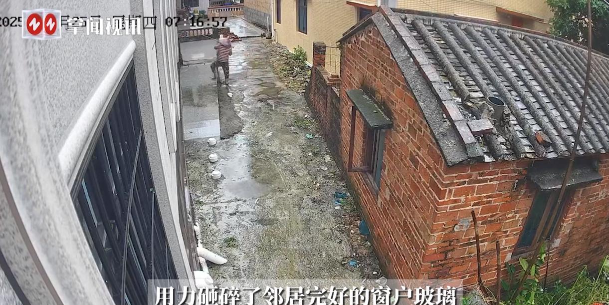 “大快人心!”9月25日,广东,一大妈发现自己的破房子被台风将玻璃刮坏了,看到邻