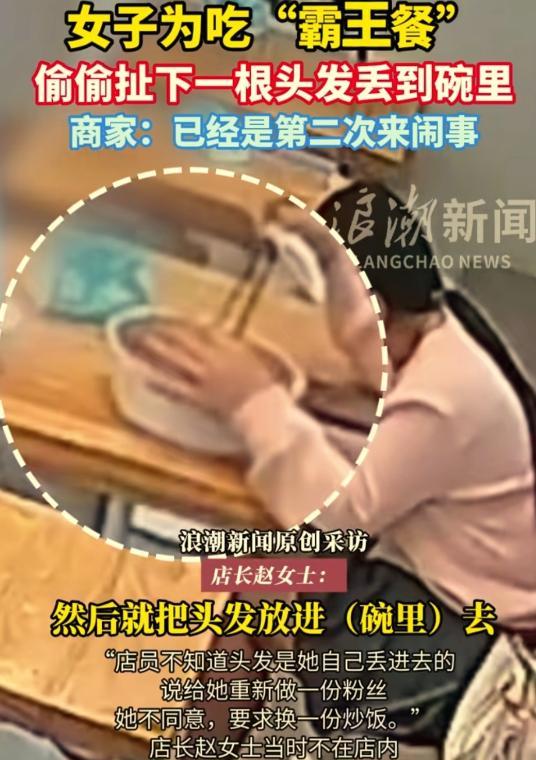 湖南益阳,有家饭店碰上了一件离谱的事,一女子在店里吃花甲粉时,趁人不注意把自己的头发放进了碗里,然后理直气壮地要求换一份炒饭,店员无奈,但也没有办法,只能答应她的要求,等晚上店主查看监控时才发现真相,原来这女子之前就有过类似的行为。 在饭店吃饭,自己往碗里放头发,就为了换饭吃。这事够离谱吧! 事发当天,店里有很多客人,大家都在各自吃着饭。 这时,进来一女子。女子一进来,就点了一份花甲粉,时间不长,店员给她端了上去。 她坐在那,一开始吃得还挺正常,时不时还看看周围,像是在观察什么。 过了一会,她突然停下筷子,用手捋了捋头发,然后就把自己的一根头发放进了碗里。 然后,她就叫店员过来。 店员小跑着过来后,这女子就说你们这粉里有头发,太不卫生了,我不吃这个了,给我换一份炒饭。 店员心里直犯嘀咕,这要求也太不合理了,哪有吃一半换菜的道理,可看着女子的样子,又有点犹豫。 而且店主当时不在店里,店员怕这事处理不好,砸了饭店的招牌,影响生意,只能硬着头皮说,行,那您稍等,我这就给您换。 女子坐在那等着炒饭,炒饭端上来了,她慢悠悠地吃着,吃完离开了饭店。 到了晚上,店主来店里查看一天的营业情况,顺便看看监控,这一看可不得了。 监控里清清楚楚地显示着,这女子就是自己把头发放进碗里的,根本不是粉里本来就有的。 这女子也太缺德了,这不是明摆着坑人吗? 再一查记录,发现上个月这女子也来过店里,当时她点了一份餐,吃完后说点错了,非要换炒饭,还要求打折。 店主当时也没多想,就给她换了,还打了折,现在看来,这女子根本就是有备而来,是个惯犯。 店主实在是忍无可忍,就把监控视频发到了网上,想让大家评评理。 视频一发出去,网友们纷纷指责这女子,说她太没素质了,为了占点小便宜,这样的事都干得出来。 也有网友说,店家就不应该惯着她,一开始就不该给她换,让她为自己的行为付出代价。 1,女子悄悄把自己头发放进花甲粉碗里,然后理直气壮要求换炒饭,这算不算欺诈呢? 民法典第一百四十八条规定,一方以欺诈手段,使对方在违背真实意思的情况下实施的民事法律行为,受欺诈方有权请求人民 法 院 或者仲 裁 机 构 予以撤销。 女子通过故意制造花甲粉有头发的假象,让店员在不知情的情况下,违背真实意愿给她换炒饭,这明显就是欺诈行为。 店员本来不会给她换,就是被她这虚假情况给骗了。 这就好比你去买东西,人家故意把坏的说成好的让你买,你买完发现上当,这就是欺诈呀。 2,女子这种故意制造虚假情况来获取不当利益的行为,是不是违反了治安管理处罚法呢? 治安管理处罚法第四十九条规定,盗窃、诈骗、哄抢、抢夺、敲诈勒索或者故意损毁公私财物的,处五日以上十日以下拘留,可以并处五百元以下罚款;情节较重的,处十日以上十五日以下拘留,可以并处一千元以下罚款。 女子通过往碗里放头发这种欺骗手段,来达到免费换炒饭的目的,实际上就是想不花钱或者少花钱获取额外利益,这和诈骗行为本质上是相似的。 虽然她这次诈骗的财物价值可能不算特别高,但这种行为扰乱了饭店的正常经营秩序,理应受到相应处罚。 就像有人用假秤骗人,虽然骗的钱不多,但也是违法的呀。 3,女子多次类似的行为,该如何定性? 从监控发现这女子之前就有过类似行为,这就不是偶然的一次了。 如果她多次以这种方式在不同饭店实施类似行为,获取不当利益,那就可能构成刑法上的诈骗罪。 刑法第二百六十六条规定,诈骗公私财物,数额较大的,处三年以下有期徒刑、拘役或者管制,并处或者单处罚金;数额巨大或者有其他严重情节的,处三年以上十年以下有期徒刑,并处罚金;数额特别巨大或者有其他特别严重情节的,处十年以上有期徒刑或者无期徒刑,并处罚金或者没收财产。 不过要构成诈骗罪,需要达到一定的数额标准。 如果她多次累计诈骗的财物数额达到当地规定的“数额较大”标准,那就要面临刑事处罚了。 这就好比一个人老是小偷小摸,虽然每次偷的东西不多,但次数多了,总价值达到一定标准,那就要坐牢了。 目前没有明确的处理结果,但综合来看,女子这种行为首先是民事上的欺诈,店家可以要求她赔偿相应损失。 从治安管理角度,可以对她进行警告、罚款等处罚。要是她多次实施且数额达到标准,那就要承担刑事责任了。 你说这女子,好好的一个人,为什么要干这种事呢,难道她不知道这样做是不对的吗,还是说她觉得这样做没什么大不了的。 店家也是倒霉,碰上这么个主,以后估计得长点记性了。 你身边有没有遇到过类似这种奇葩的事呢,你对这件事有什么看法呢? 信息来源:浪潮新闻