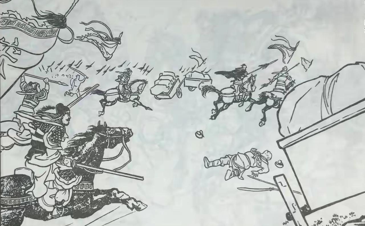 金国大将摩利支一路攻关夺寨,来到藕塘关下,杀败总兵金节,天天讨敌骂阵。 抗金大帅岳飞接到急报,命黑脸将军去藕塘关解围。将军的到来,让金节非常高兴,亲自作陪招待将军,将军开怀畅饮好不痛快。 这时候,摩利支又来叫阵,将军不听金节劝告执意出战。他命军卒抬来一大坛酒,他“咕咚咕咚”喝得醉醺醺的,传令出城迎敌。 摩利支一见上来个醉鬼,不由地暗自得意,这不是来送死的吗?将军到了阵前,不急于交战,却令军兵抬过酒又喝了起来。正在摩利支看的目瞪口呆之际,突然,将军举起酒坛子,“呜”的砸向摩利支。摩利支一见不好急忙闪身躲过。说时迟那时快,将军早已举锏打过来了,一锏打在摩利支头上,死尸当即摔落马下。 将军趁机率兵冲向金兵,金兵群龙无首,兵败如山倒,一直追出二十多里去才收兵回关。