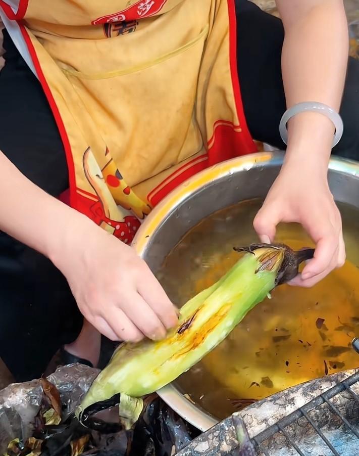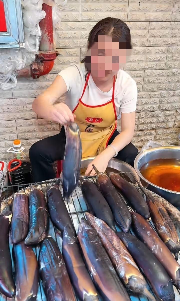 茄子居然还能这么吃? 下班路过菜市场,我看到一个大姐在那儿烤茄子,就是那种生茄子