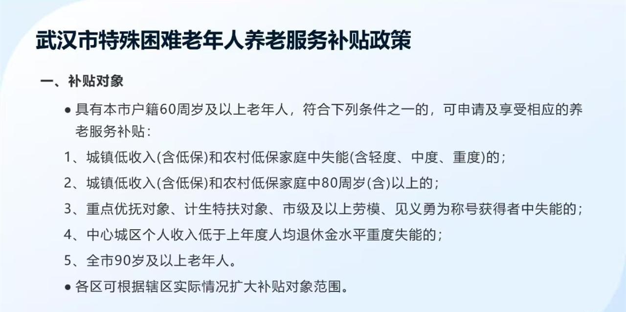 武汉城事! 近日,社区网格员告知目前武汉出台了《武汉市特殊困难老年人养老服务补贴