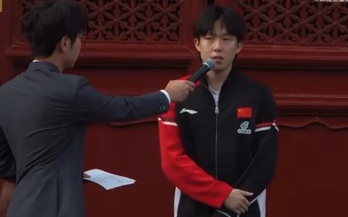 王楚钦和蒯曼讲话都想自己拿话筒。看看王楚钦兰花指都出来了,结果主持人就不给。没法