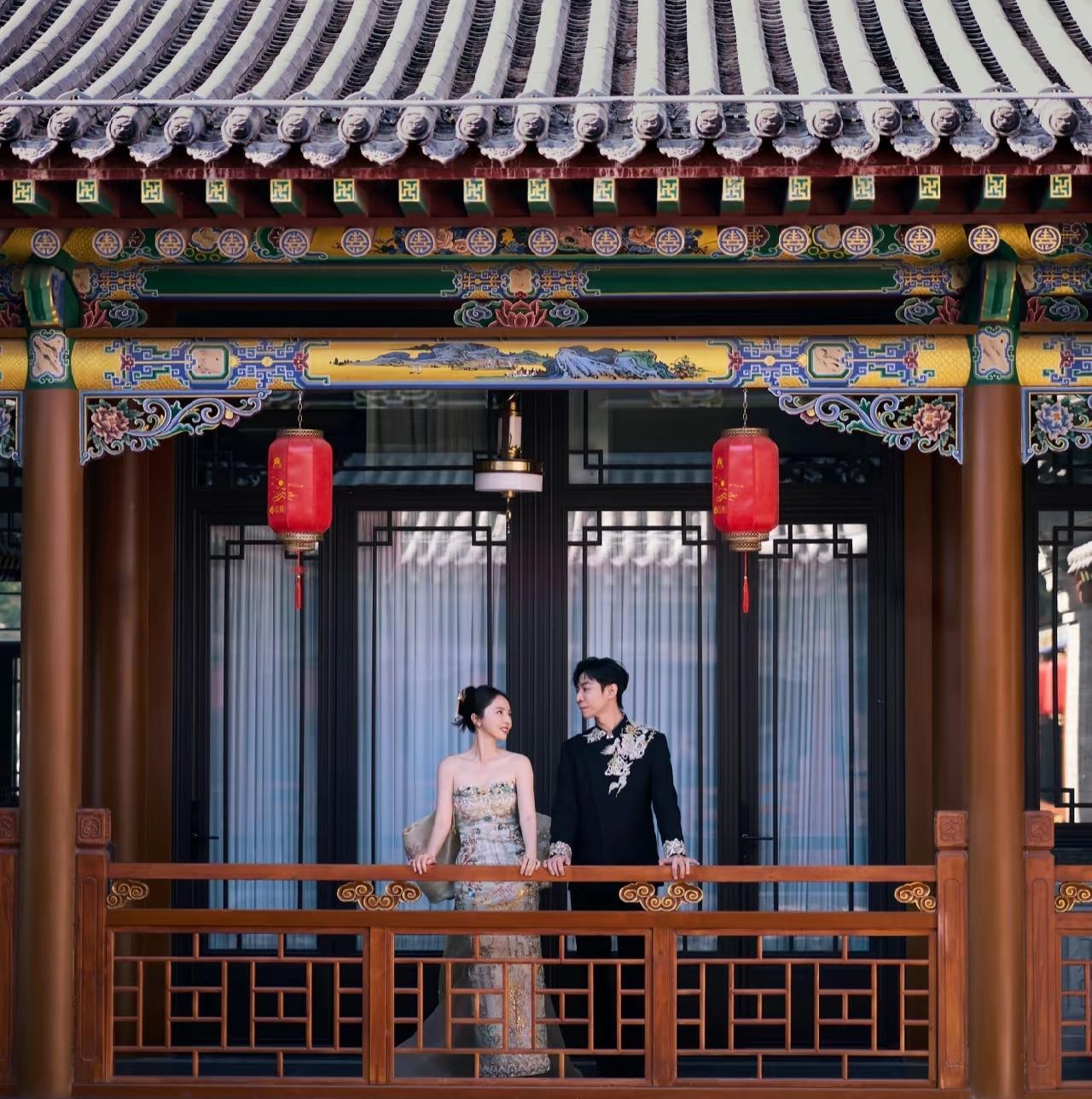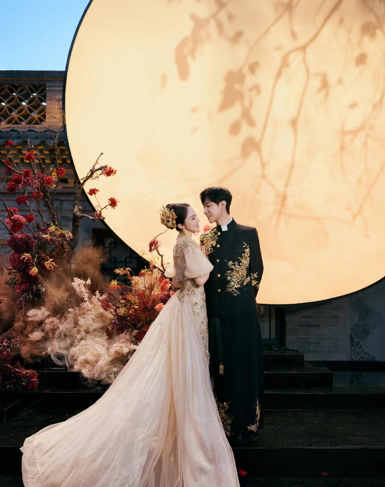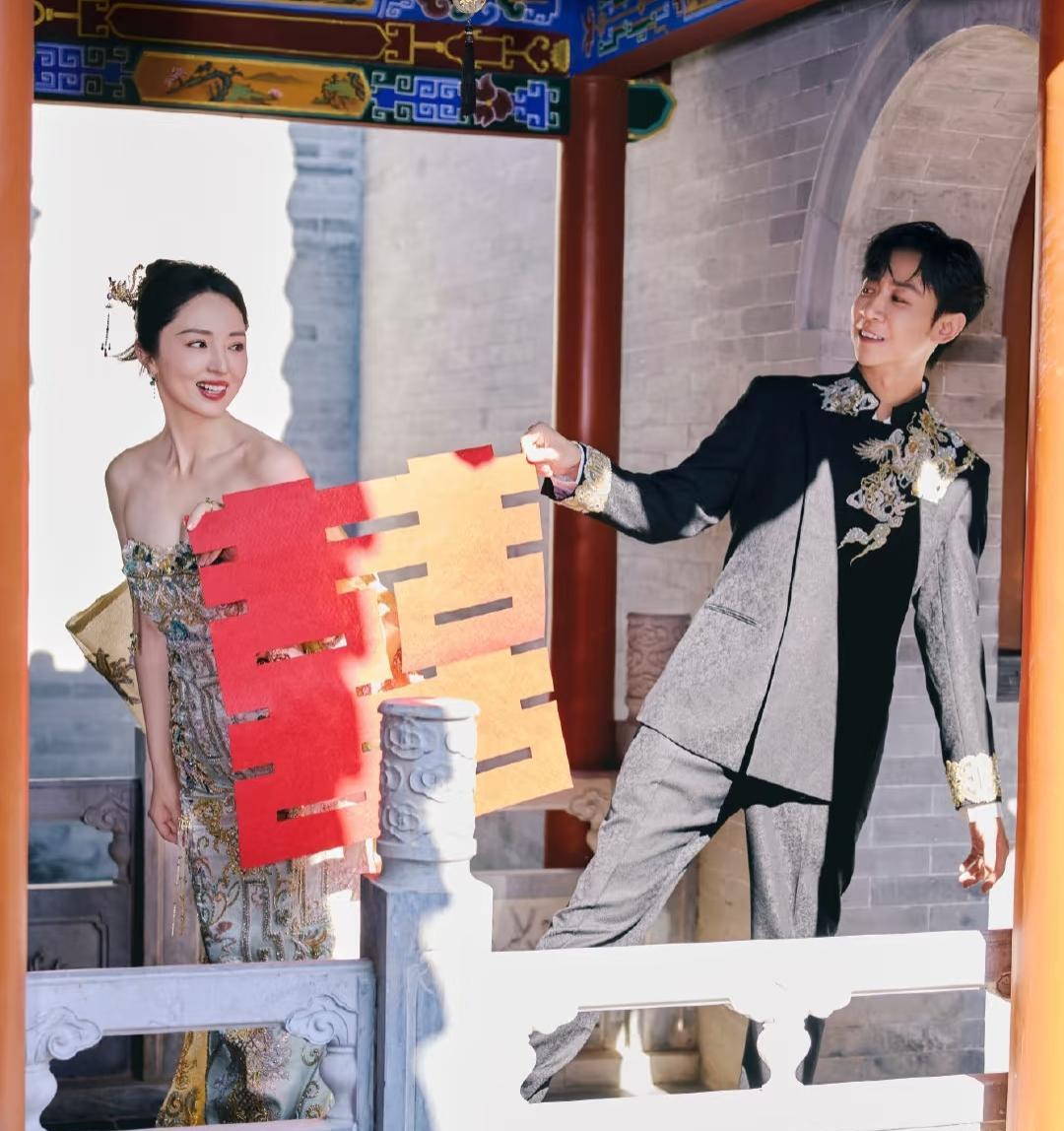 董璇晒她和老公的中式婚礼照片,不得不说,这风格是挺好看的!两口子心里挺强大的,被