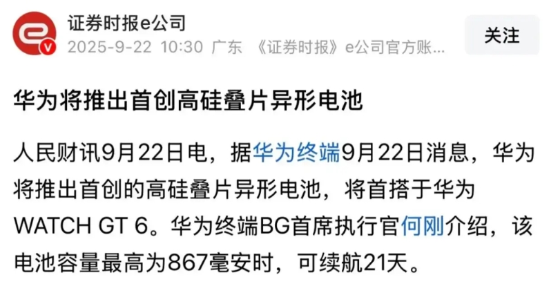 mate80系列会不会用上高硅叠片电池呢? 华为watchGT6用上了首创的高