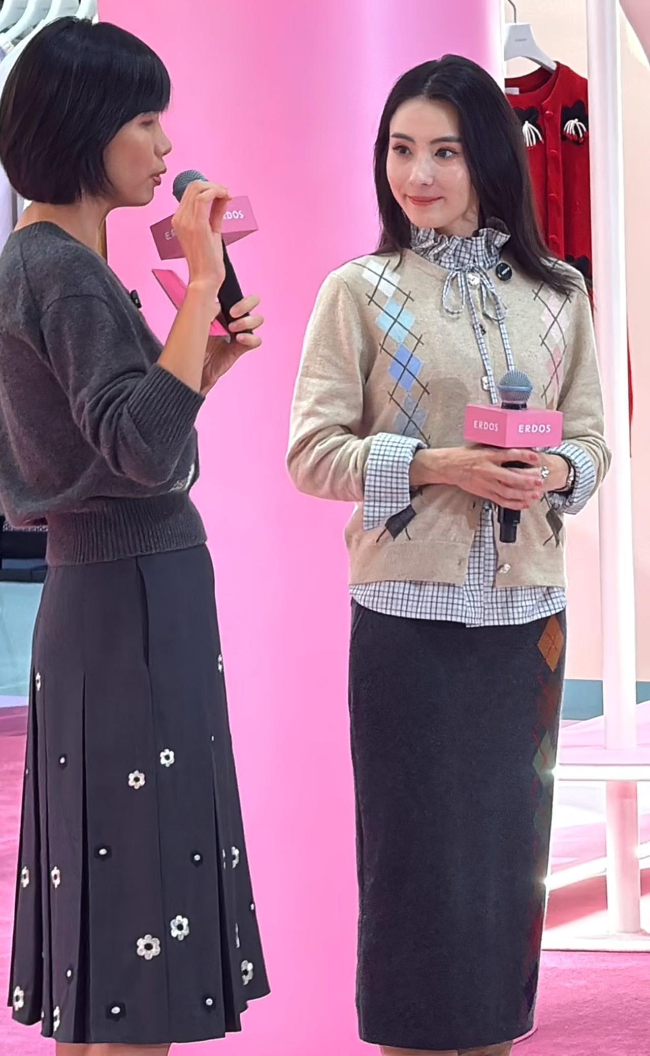 张柏芝重庆参加活动,人气也太高了。张柏芝穿着复古格纹羊绒衫和半裙参加活动,活动现