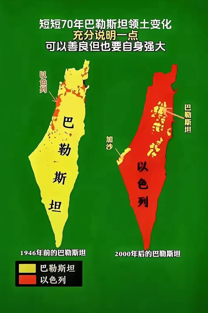 实现以巴和解难于上青天? 这一阵,全球已有150多个国家承认巴勒斯坦为独立国家。巴勒斯坦国虽然得到了世界大多数国家的承认,但只要看到巴勒斯坦已经碎片化的可怜国土,就不难看到巴勒斯坦建国有多难,以色列和巴勒斯坦实现永久和解有多难。更何况巴勒斯坦自身内部矛盾的化解能否实现还不得而之。 以色列是中东地区的小巨人,他的身后就算没有usA,巴勒斯坦想干胜他,也纯属天方夜谭。要实现巴勒斯坦与以色列的和解,仅靠国际社会对巴勒斯坦建国的认可还远远不够。 就个人的观点,巴勒斯坦的国土现状,要想立国并与以色列和平共处,机率微乎其微。这道世界难题的破解,最终还得取决于和平正义力量对以色列及其主子的改变程度。而巴勒斯坦若解决不了自身的问题,他会连顺势而为的改变机会也抓不住。
