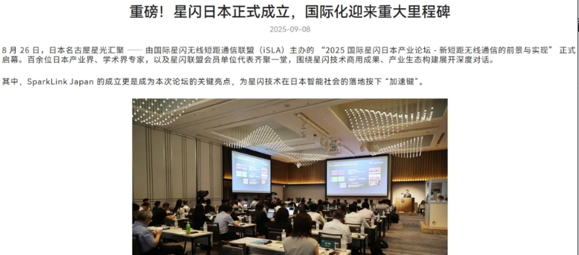 更加可喜的是,不久前,星闪日本(SparkLink Japan)刚刚成立,这是星闪标准国际化的关键里程碑。