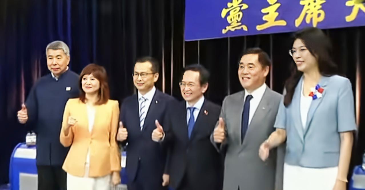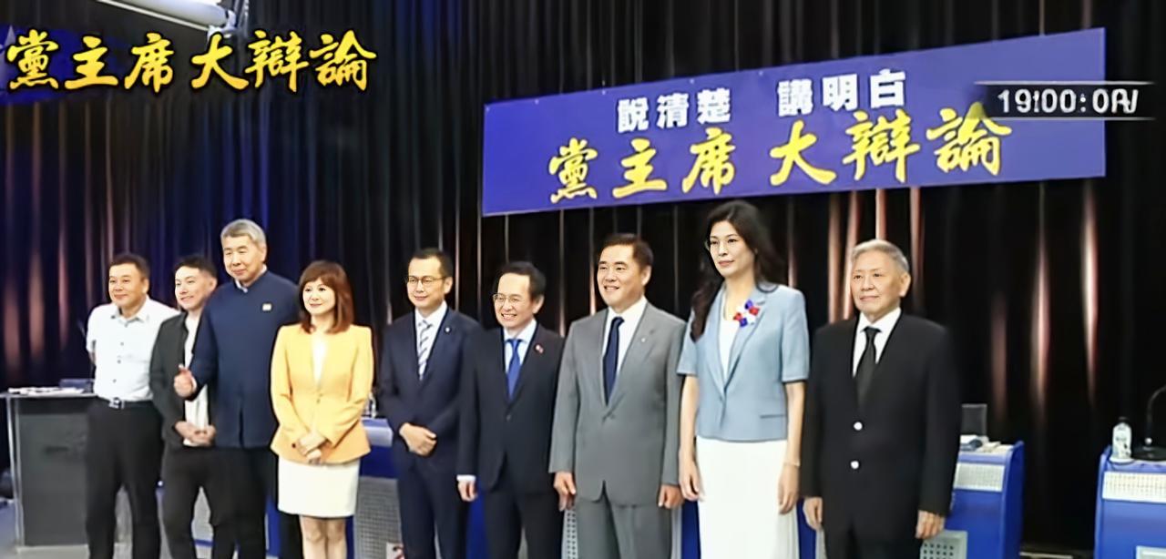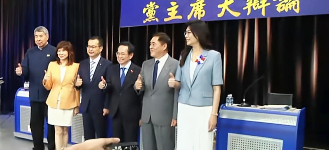 中国台湾的中国国民党党主席选举第二轮大辩论正式开始前,我发现一个细节,就是合影的