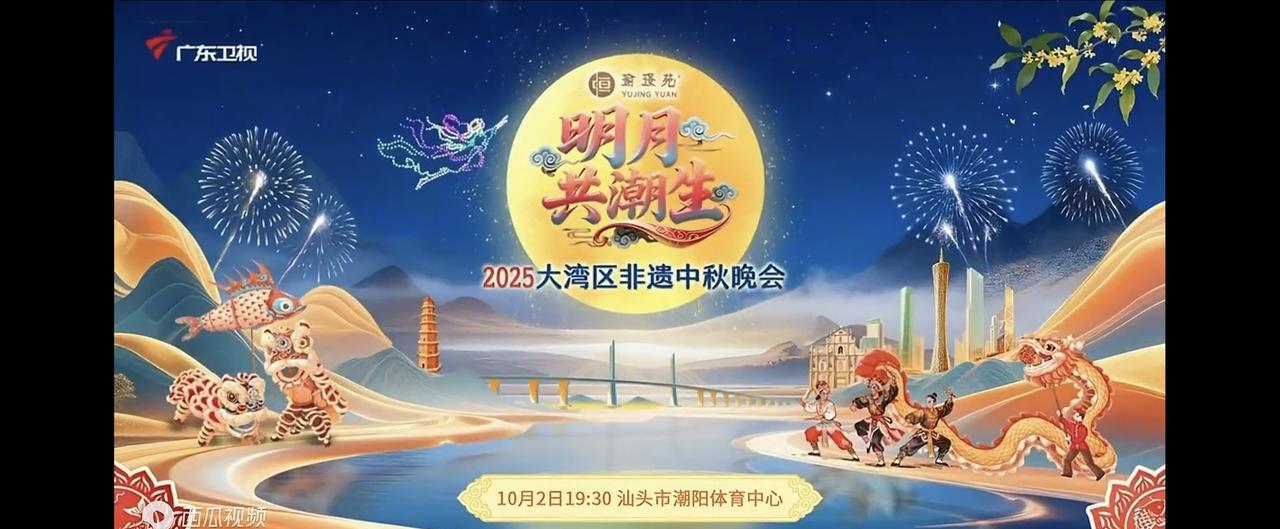 两台晚会,傻傻分不清:“湾区升明月”是电影音乐晚会,“明月共潮生”是大湾区中秋晚会。 9月28日这场才是王牌,在澳门录制的,主办单位是电影频道,来了一百多位巨星,满足老中青三代人的梦。 10月2日在汕头潮阳体育中心录制的是“大湾区非遗中秋晚会”,主题是“明月共潮生”,是广东卫视办的,有萨顶顶、吕方、段奥娟三个明星,主要是潮阳英歌表演。在10月6日中秋节当晚播出。