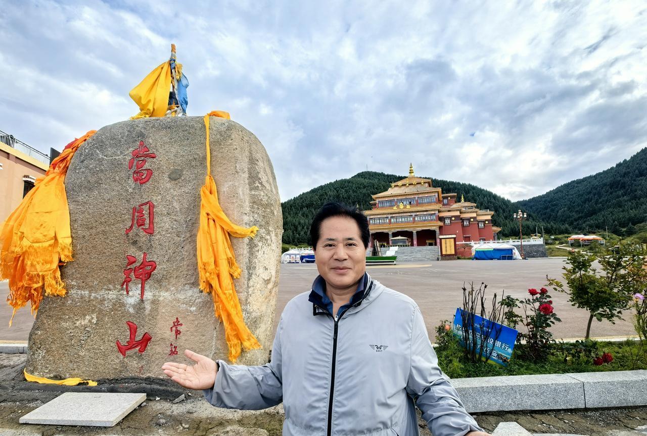 平武助苗耕获丰,甘南秀美越奇峰。 神山游客初攀倚,逯氏家人再说逢。 痛饮高歌军旅