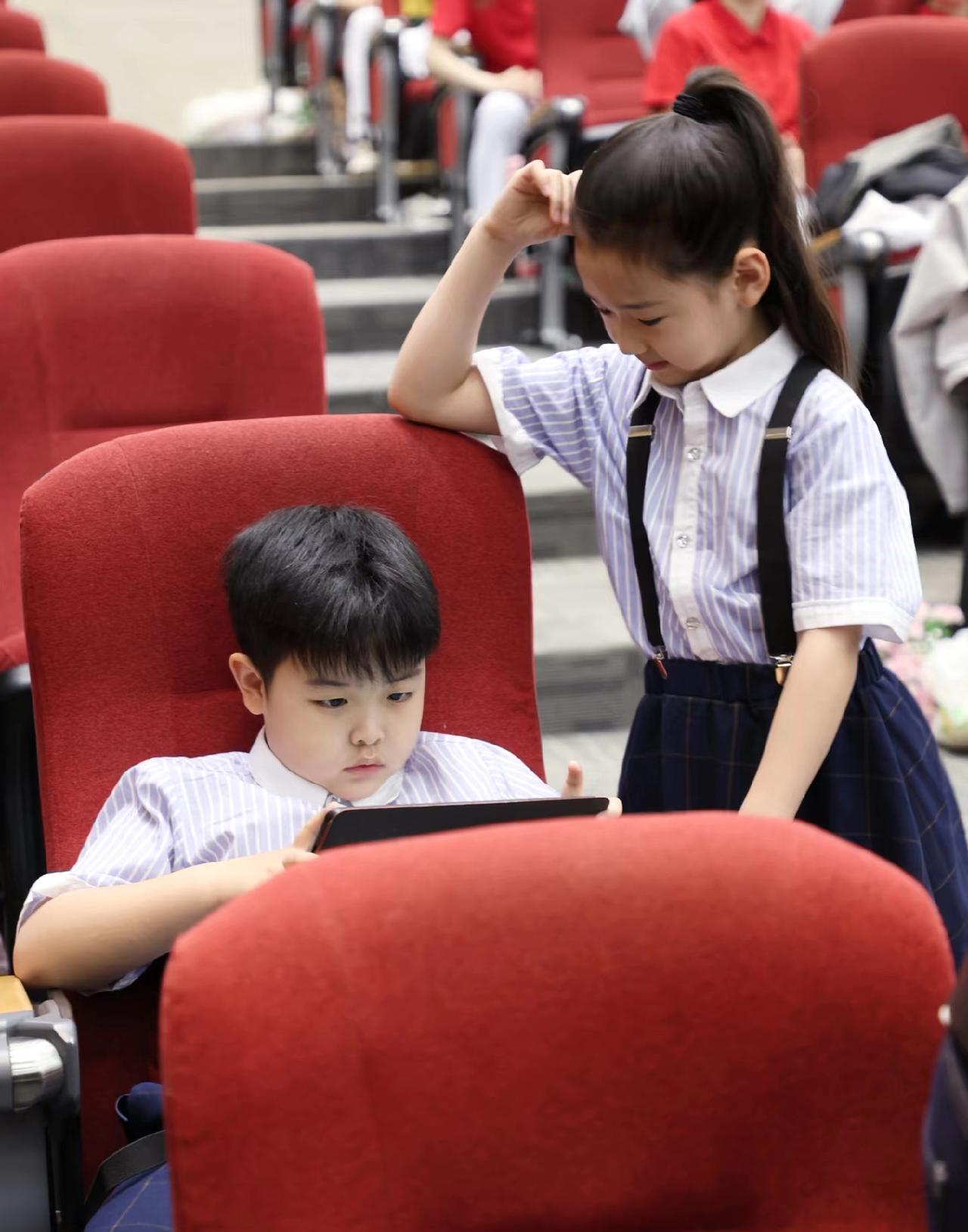 董璇的婚礼上还有两个小可爱,就是小酒窝和朵朵!朵朵还挺酷,戴上了墨镜,再一次感叹,他和他爸太像了!那个小神态和小表情,简直就是陈思诚本诚啊!小酒窝也好活泼,她还挺开心的,还亲自为妈妈和张维伊送上剪刀,全程很兴奋,看到妈妈的新娘扮相,她还开心的欢呼了出来,好可爱!说明小酒窝很认可张维伊的,现场真的挺热闹的,董璇的人缘也好,来了很多朋友,见证她的幸福!#董璇#