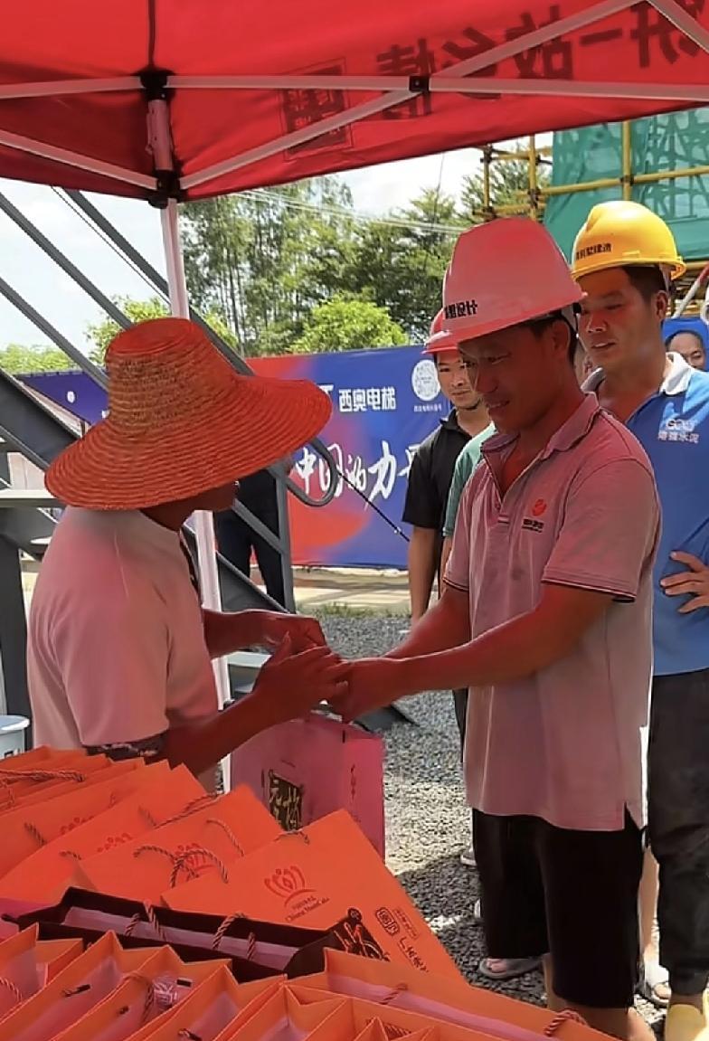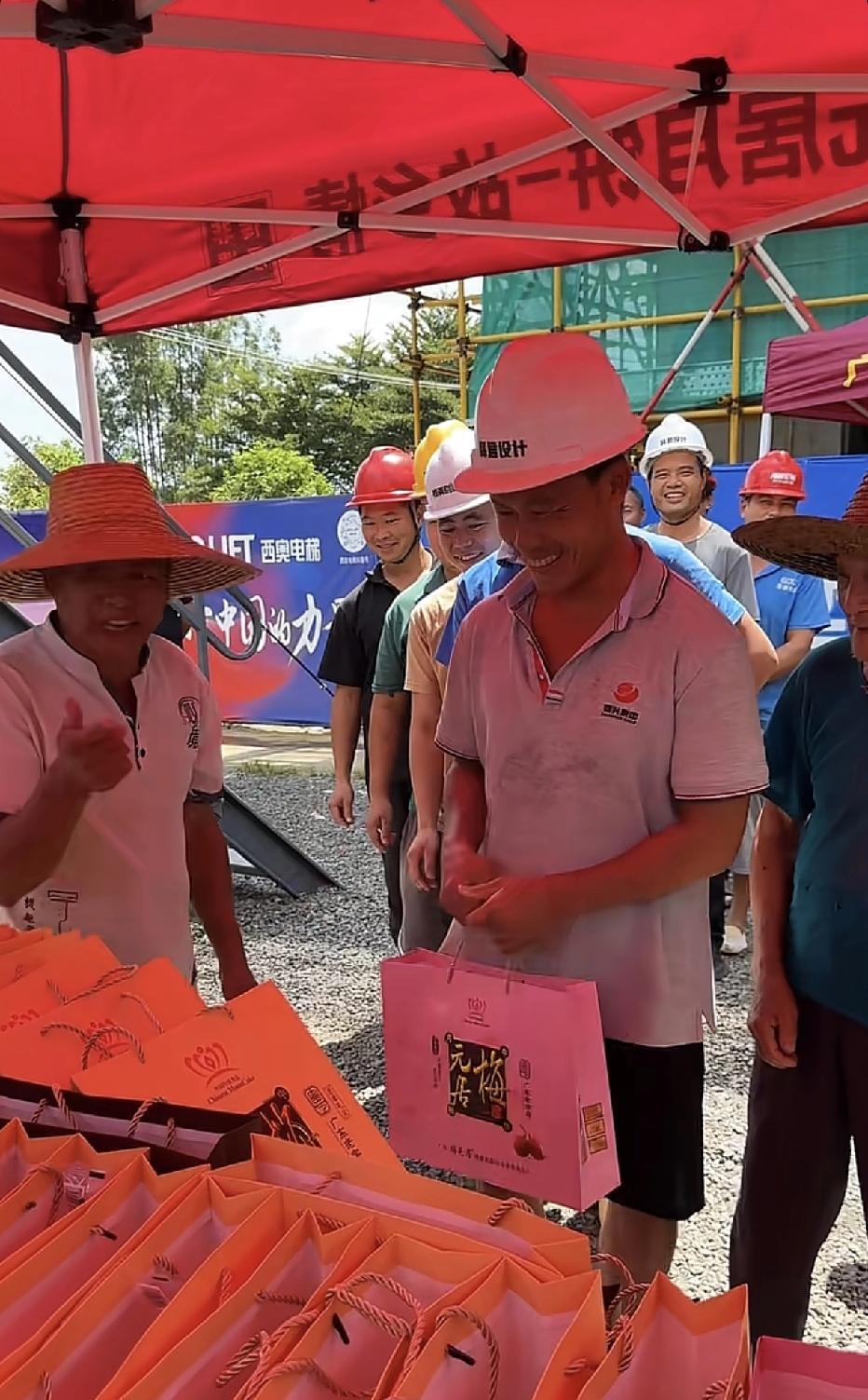 #晒图笔记大赛#全红婵的爸爸,做人格局可以,大家都是看在眼里的。 临近中秋佳节了,全爸爸为了感谢那些工友,一直为自己的房屋建造做出努力,特意自己掏钱买了些月饼礼品,分发给这些工友们。 论做人这一块,全爸爸是带着感恩的心的,有他们的付出,才有自己的小家嘛,全爸爸这种做人奉献心态是可以的。