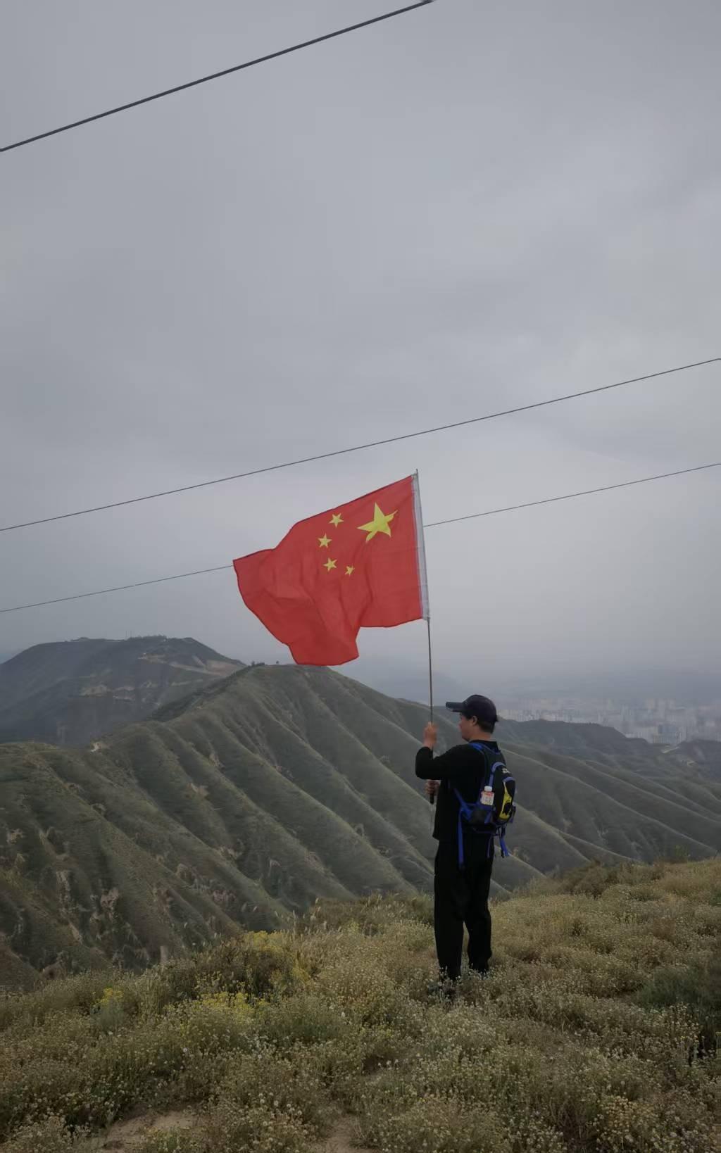 国庆前期,趁周末休息,顶着零星的小雨登兰州北山,赏景看花锻炼身体。 再一周要国庆了,祖国要过76岁生日,我特意带了一面国旗,在我登顶之后,挥舞起国旗,提前为祖国76岁生日献礼,送上最美好的祝福,愿祖国无比强大、繁荣富强,人民幸福安康,也可以对先烈们自豪的说:“如今岁月静好,江山无恙”
