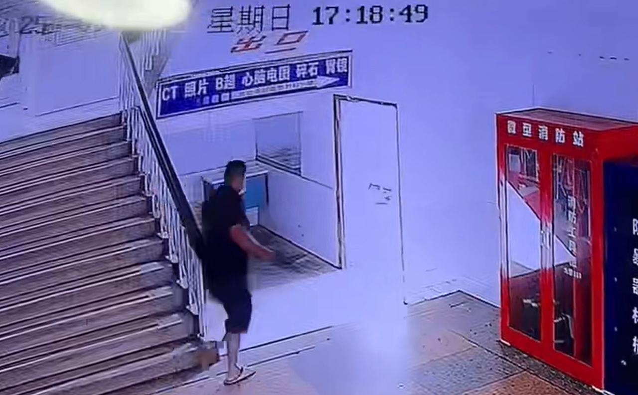 9月14日,湖南常德的尹先生带儿子去医院看病,从后门进入时,恰逢刘大爷推着自行车