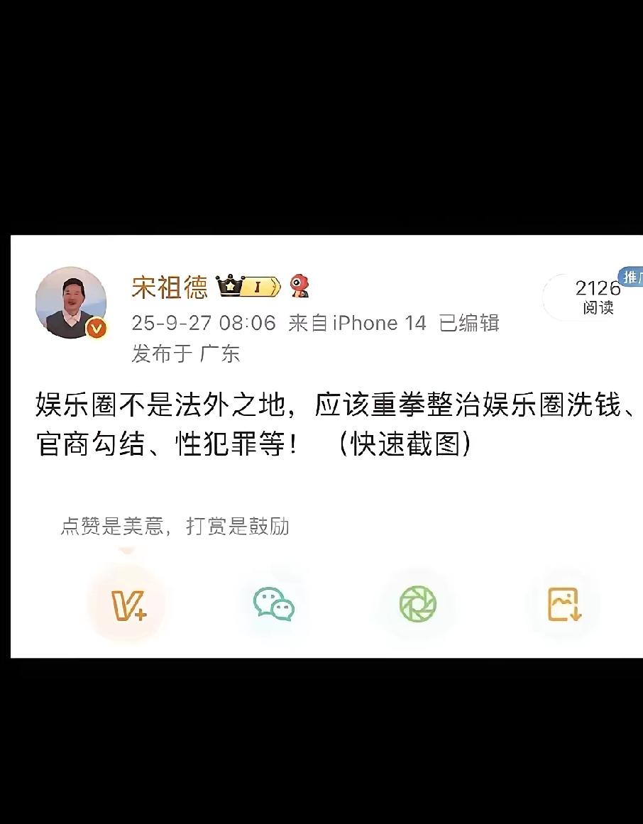 以前不喜欢宋祖德, 现在真的不要太喜欢! 刷到他又发新文还特意提醒大家快截图,瞬间懂了——这是早料到真话要被藏起来,这份清醒劲儿太戳人。 娱乐圈里太多人揣着明白装糊涂,唯独他敢指名道姓质疑,从炮轰顶流到追问热点真相,哪怕有时显得苛刻,却比一群沉默的“聪明人”多了份真性情。 有人说他嘴碎,但杭州保姆纵火案时他先提查林生斌,预言某些明星出事也一一应验,连打赌输了真的从广州爬去佛山,这份敢说敢认的“人味”太难得。 其实大家喜欢的哪里是他的犀利,是在众声沉默时,有人愿意站出来说句实在话。你是从哪件事开始对宋祖德改观的?