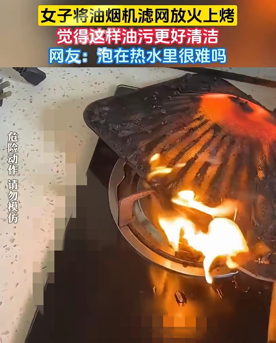 不作死就不会死! 刷个油烟机滤网能有多离谱? 有人居然直接架在燃气灶上用火烤,看着油污被烧得滋滋冒黑烟还拍视频炫耀,说这办法又快又干净,评论区直接看傻了——难道泡会儿热水加小苏打很难吗? 别觉得这只是“图省事”,油垢本身就是易燃物,明火烤的时候油滴溅到灶台上,一个火星子就能引燃;就算当下没出事,滤网金属被高温烧变形,后续用的时候反而更容易积油污,还可能释放有害物质,屋里那股焦糊味好几天散不去,这哪是清洁,分明是给自己埋安全隐患! 其实清理滤网根本不用费这劲,热水泡一泡、喷点油污净,或者干脆三个月换个新的,花不了几块钱还省心。生活里的“小聪明”得用在正地方,拿安全换省事,再小的风险也可能酿成大麻烦。 你身边有没有人用过类似的“危险清洁法”?或者你有什么既安全又省力的家务小技巧,来评论区分享下呗!