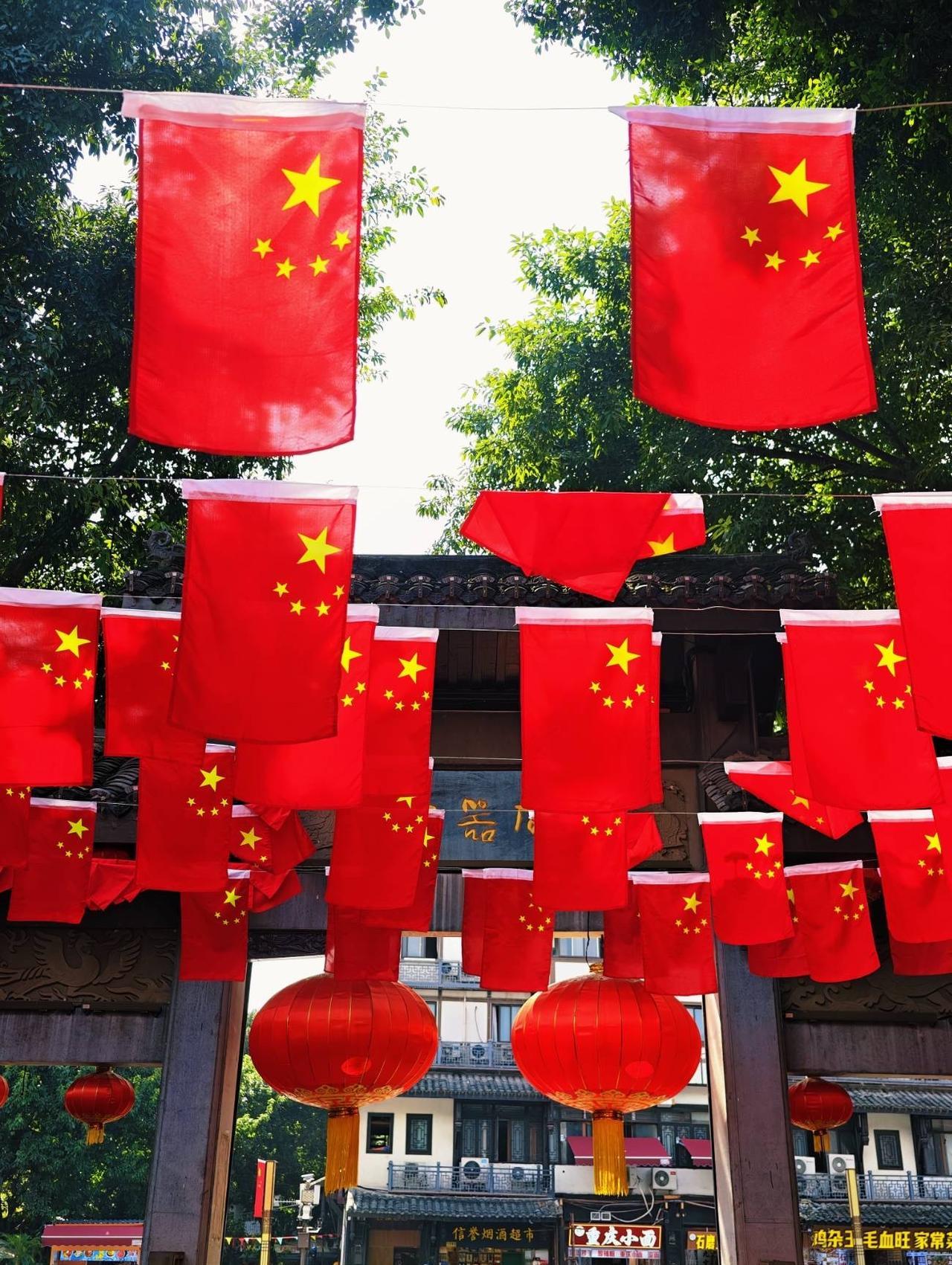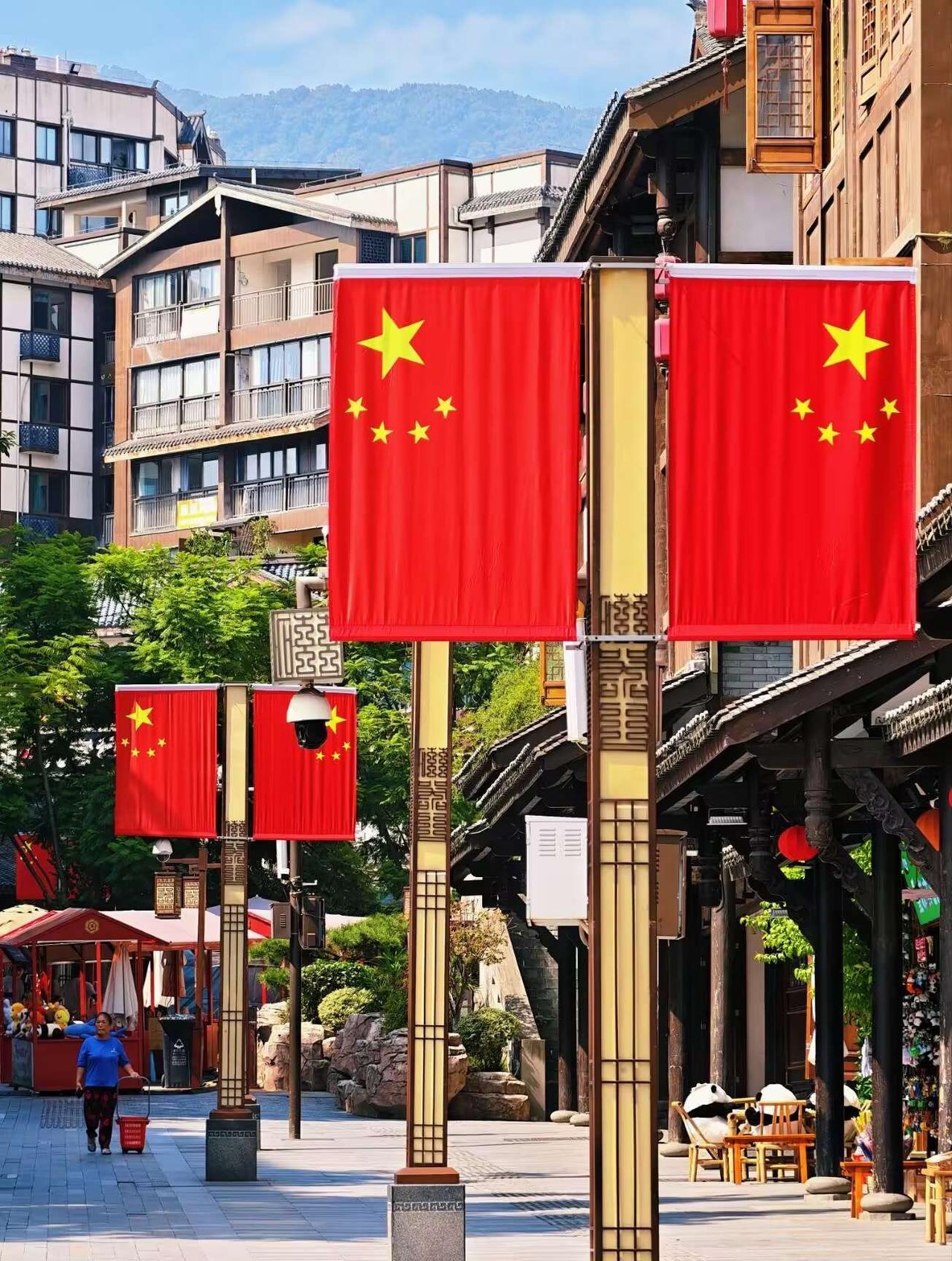 太美啦!9月27日,蓝天白云下的重庆磁器口古镇,挂满了国旗,国庆节气氛热烈,在阳光下,五星红旗发着光,令人振奋! 在重庆主城区,磁器口古镇的国旗悬挂布置很有特色。 借此良辰美景,我祝大家国庆快乐中秋快乐!#光线摄影世界曾兰谈天说地#
