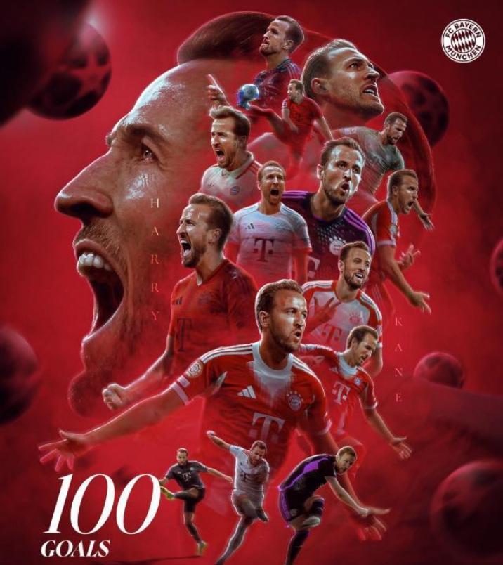 绿茵资讯! ★你的凯皇,无限猖狂! 凯恩打进拜仁百球仅用104场比赛,创造了21