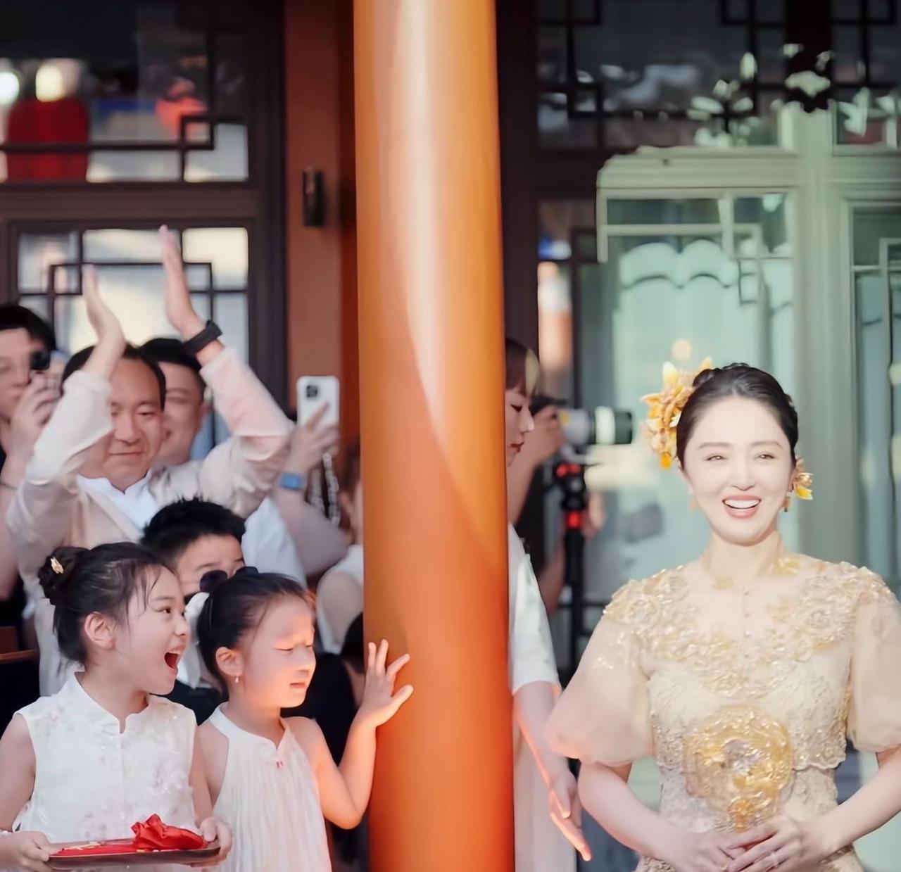 小酒窝在妈妈婚礼上献唱,董璇笑得好开心。小酒窝在妈妈董璇的婚礼上唱歌,自然大方,