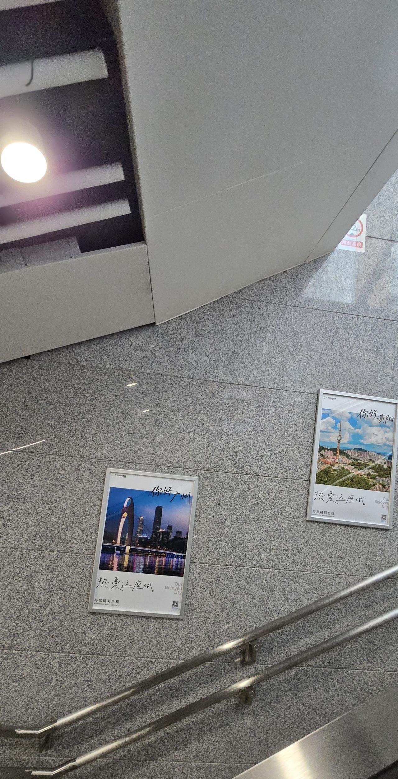 #你问我答# 贵阳北京路地铁J口长长的楼梯两边挂满了城市风景宣传画,宣传画左下方写着“热爱这座城”,但奇怪的是右上方却是不一样的“你好贵阳”“你好广州”。 这明明就是贵阳的地铁,为什么会写“你好广州”呢?
