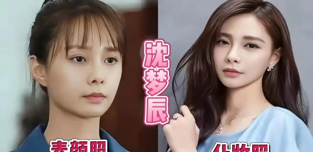 李梓萌化妆前后,素颜的她比化妆后还要漂亮!还要秀美。 沈梦辰素颜也好漂亮,化妆后