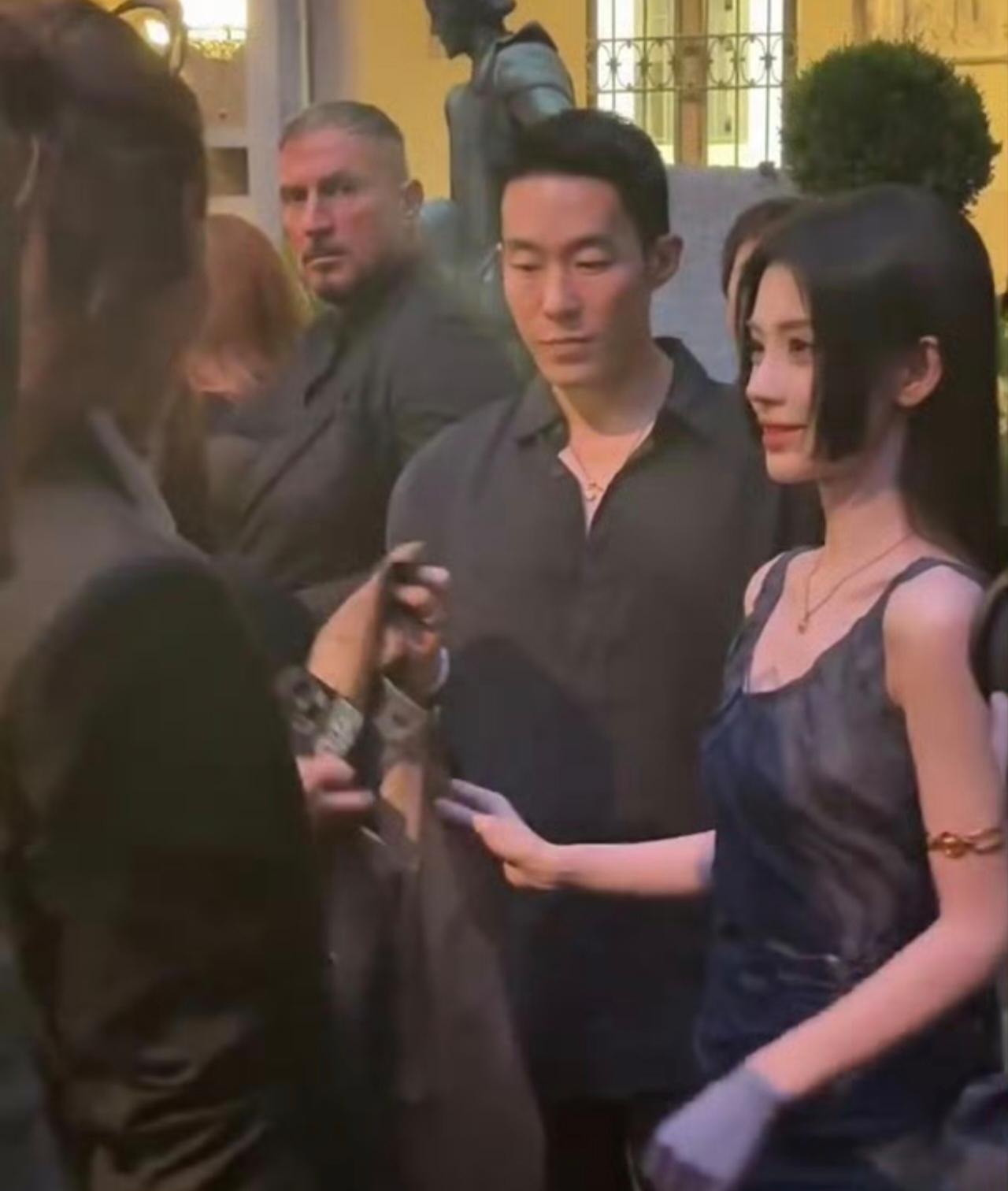 鞠婧祎作为Versace特邀嘉宾出席米兰时装周时,被多次目击由雷雨晨(大雷)陪同