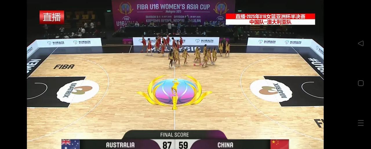 2025女篮U16亚洲杯中日女篮3-4名决赛再次相遇,59比87大比分败给澳大利