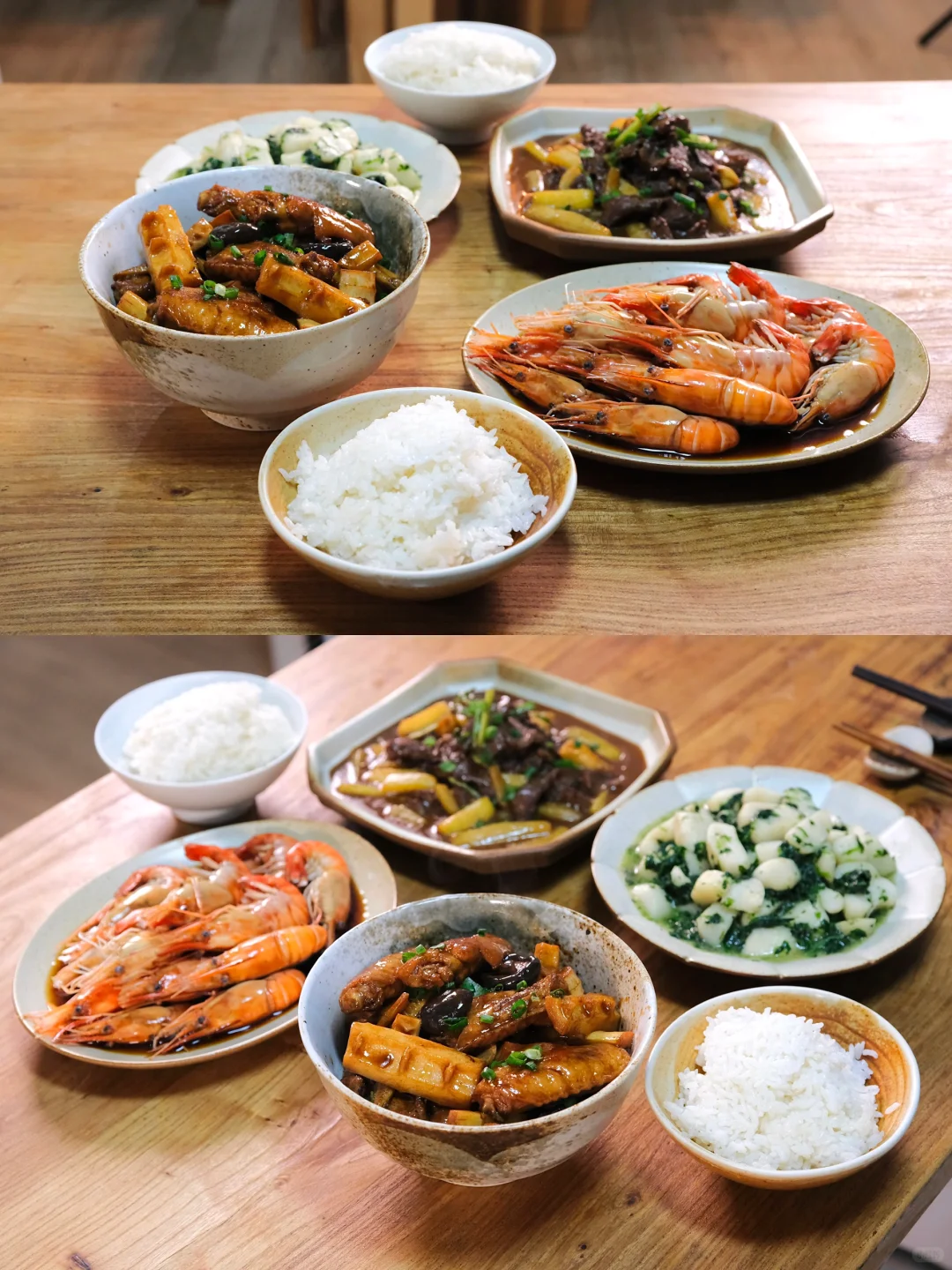 今日菜谱: 1⃣️春笋香菇烧鸡翅(春笋脆嫩,鸡翅软烂,酱汁浓郁到舔盘) 2⃣️荠菜烧荸荠(清爽又解腻,荠菜的清香+荸荠的脆甜,这盘真的超绝) 3⃣️西葫芦炒牛肉(牛肉嫩滑,西葫芦脆爽,低脂又美味!) 4⃣️熟醉罗氏虾(花雕酒香渗透在虾肉里,罗氏虾的肉紧实Q弹,好吃到停不下来!) 最近忙到飞起,其实这是昨晚的菜,一直拖到现在,但美食永远不会迟到,四道简单又超美味的菜谱,终于整理好啦! 我的做法依然分享在图片上咯