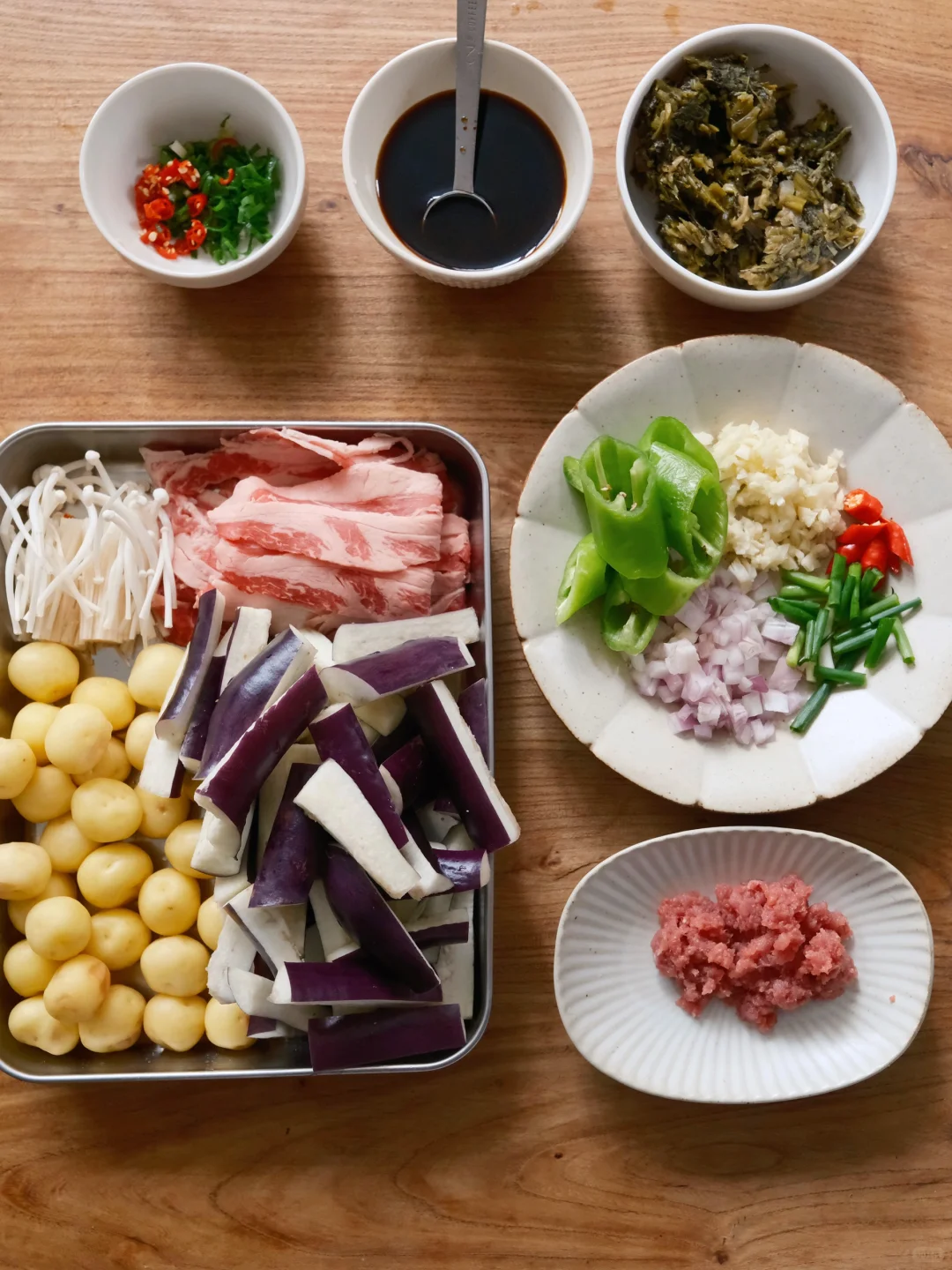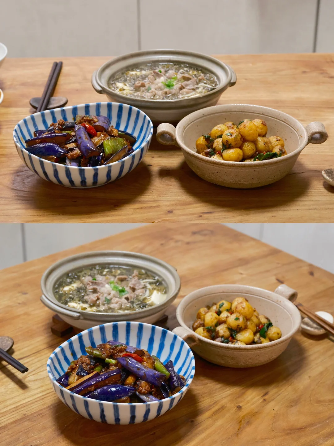 今日菜单: 1⃣️鱼香肉末茄子 2⃣️椒盐小土豆 3⃣️雪菜肥牛豆腐锅 今天没买到新鲜的小土豆,但是买到了真空包装已经去好皮的,也行,还方便点。这个椒盐小土豆真的百吃不腻,太香咯! 鱼香茄子没有鱼,就像老婆饼里没有老婆,这道菜拌饭一绝,茄子完美吸收鱼香汁的酸甜辣,简直比鱼肉还好吃~