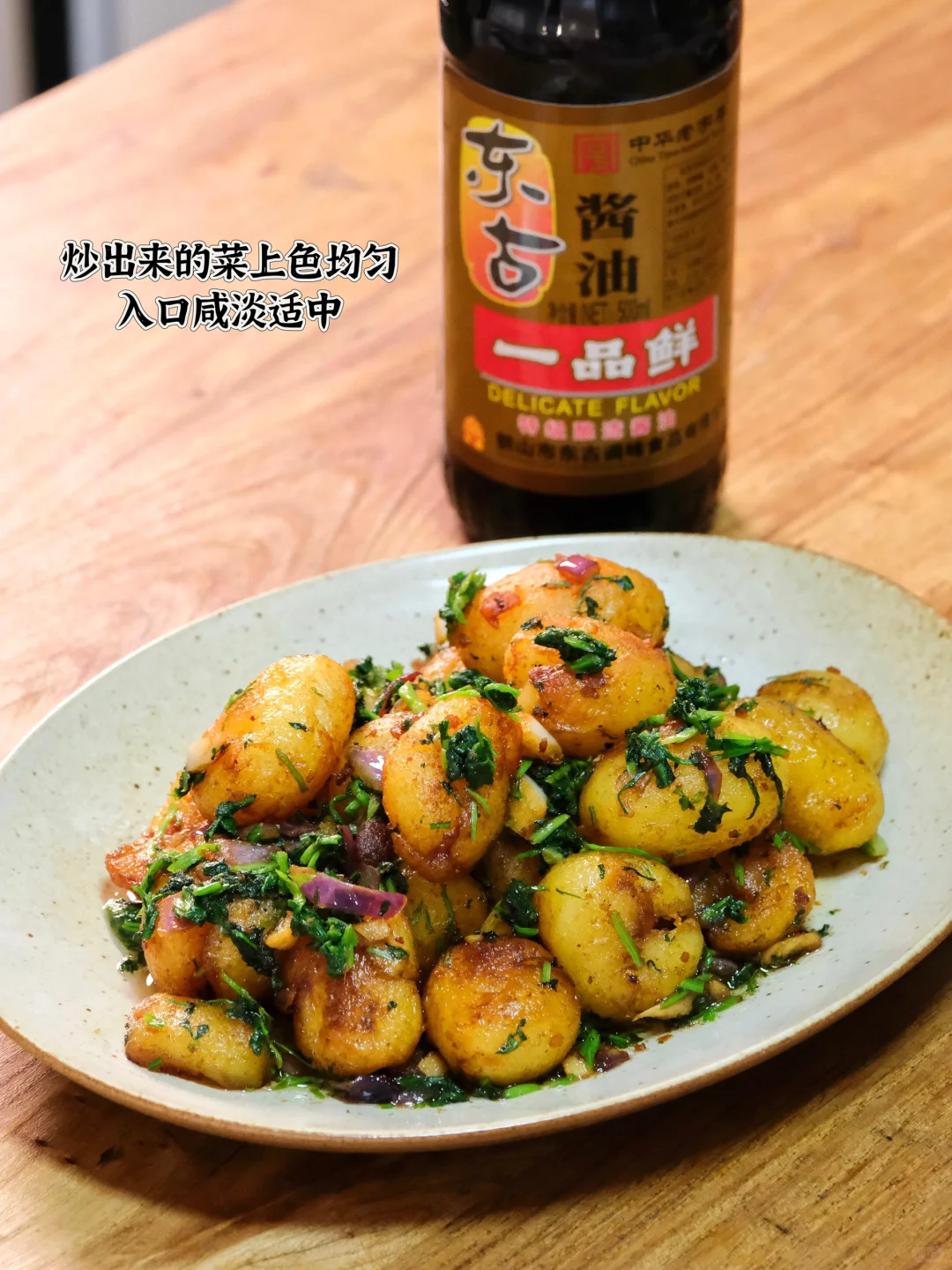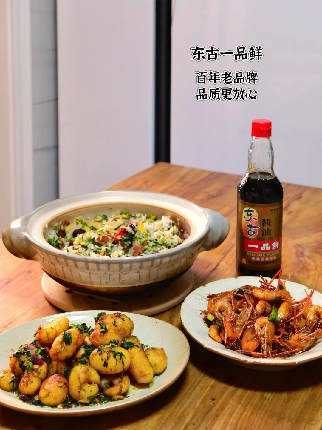 我晃晃酱油瓶:"用阳光晒足三个月的东古一品鲜酱油,最能衬出春天的鲜。"