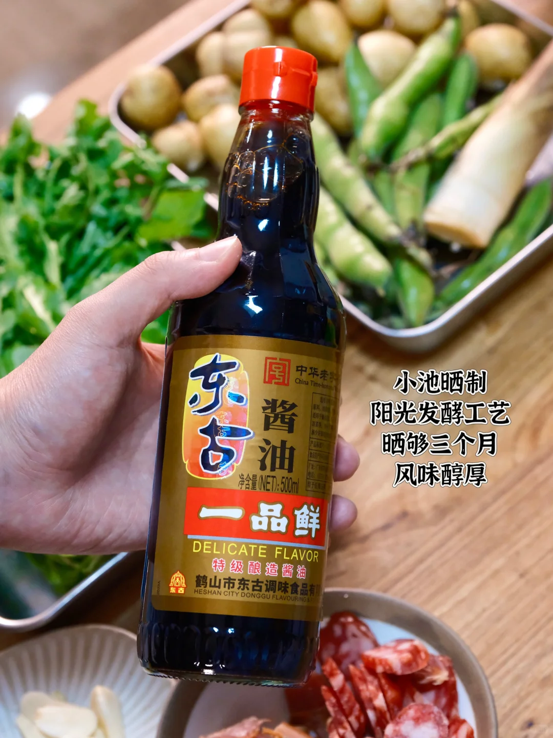 好味道都需要时间的成全,东古采用小池晒制工艺,原料优选非转基因大豆,晒制三个月到充分发酵,就像最新鲜的时令菜,遇见精准日晒的酱油,便是最对味的相逢。
