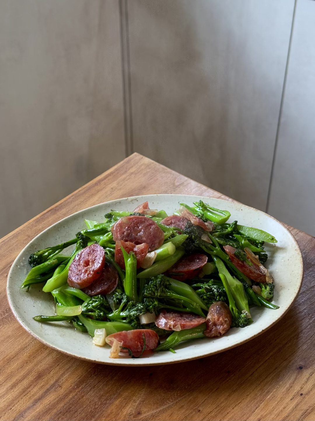 今日菜单: 1⃣️番茄炒蛋 2⃣️甜杆西兰花炒腊肠 3⃣️萝卜炖牛肉 前两天逛超市的时候,买了盒牛碎肉试试,边角料样子不太美,拿来炖了白萝卜,味道还是不错的,又是美美的一顿。