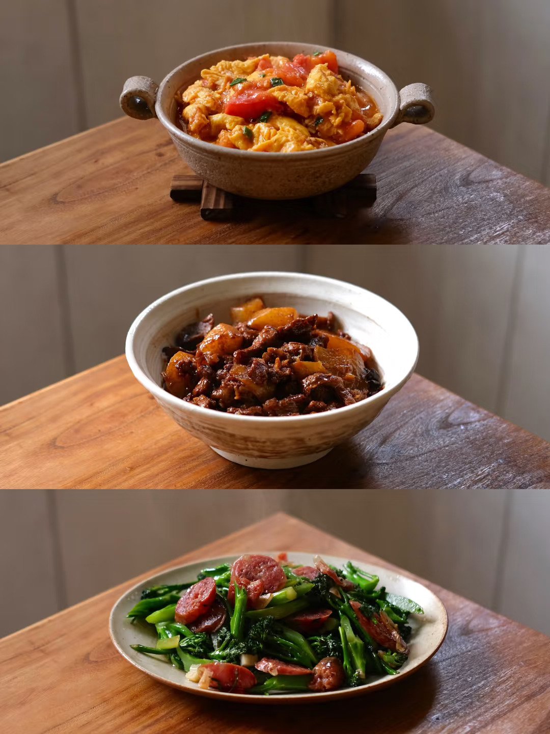 300天|萝卜炖牛肉西兰花炒腊肠番茄炒蛋