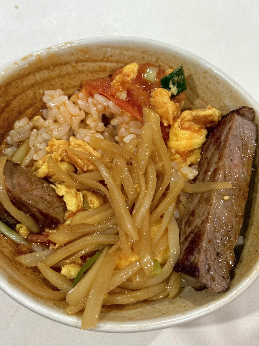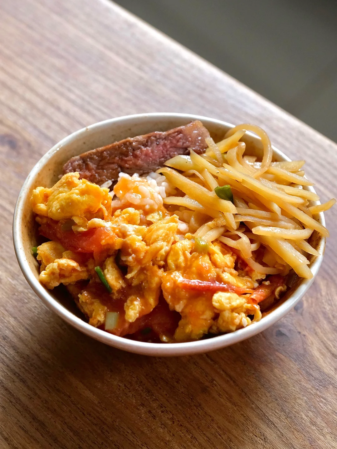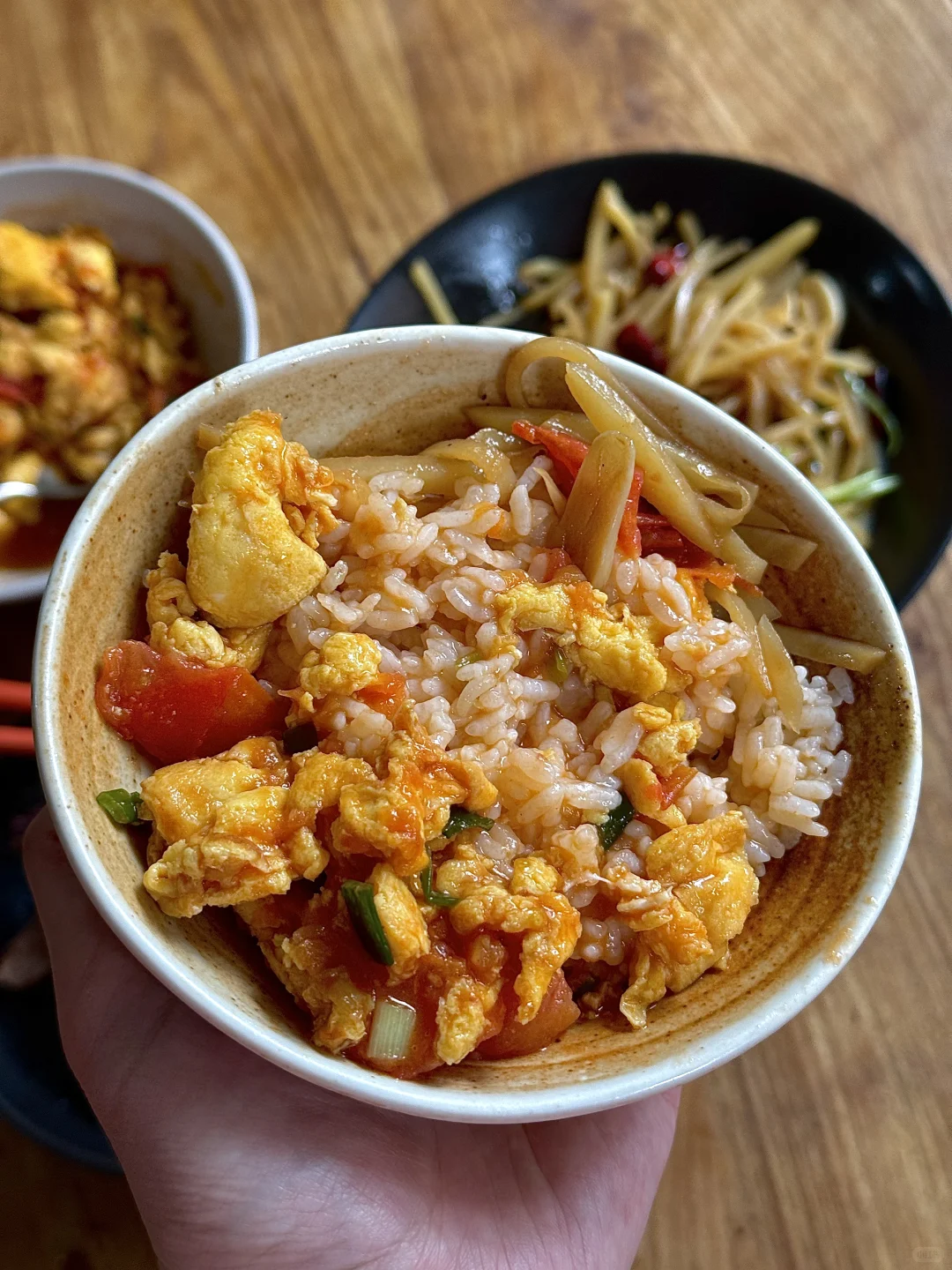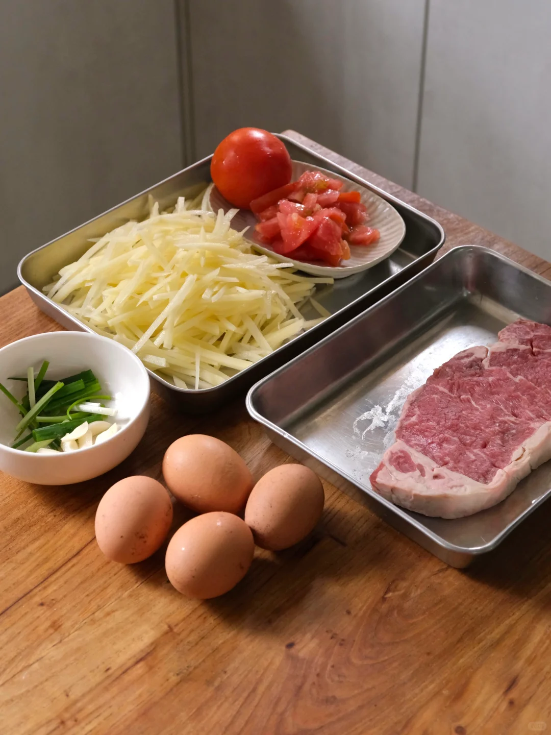 今日菜单: 1⃣️番茄炒蛋 2⃣️煎牛排 3⃣️酸辣土豆丝