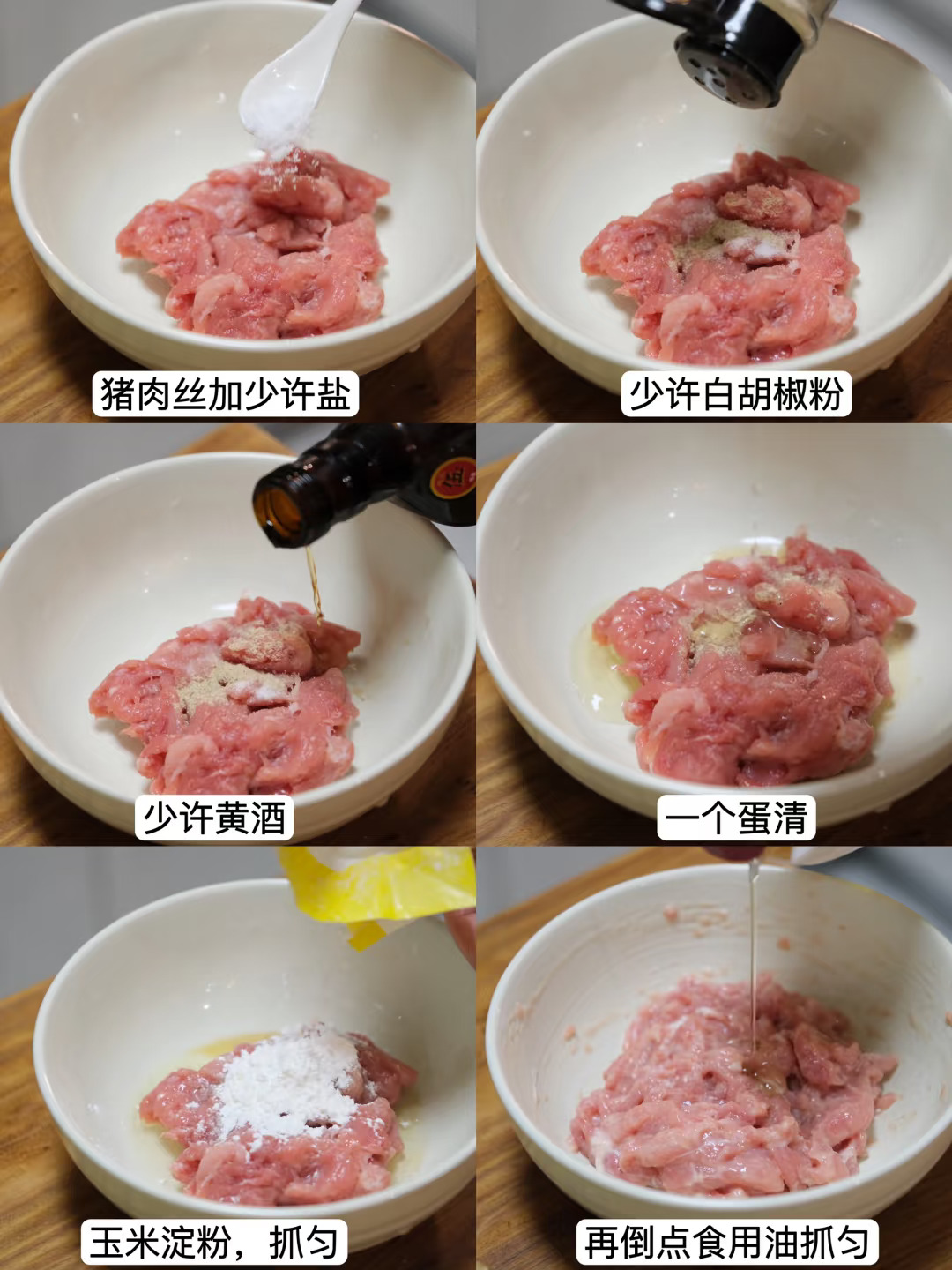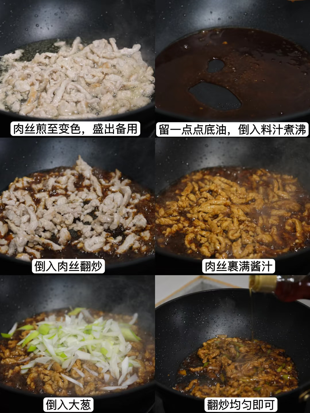 葱烧肉丝的料汁:2勺甜面酱、1勺黄酒、1勺白砂糖、50勺清水,搅拌均匀。