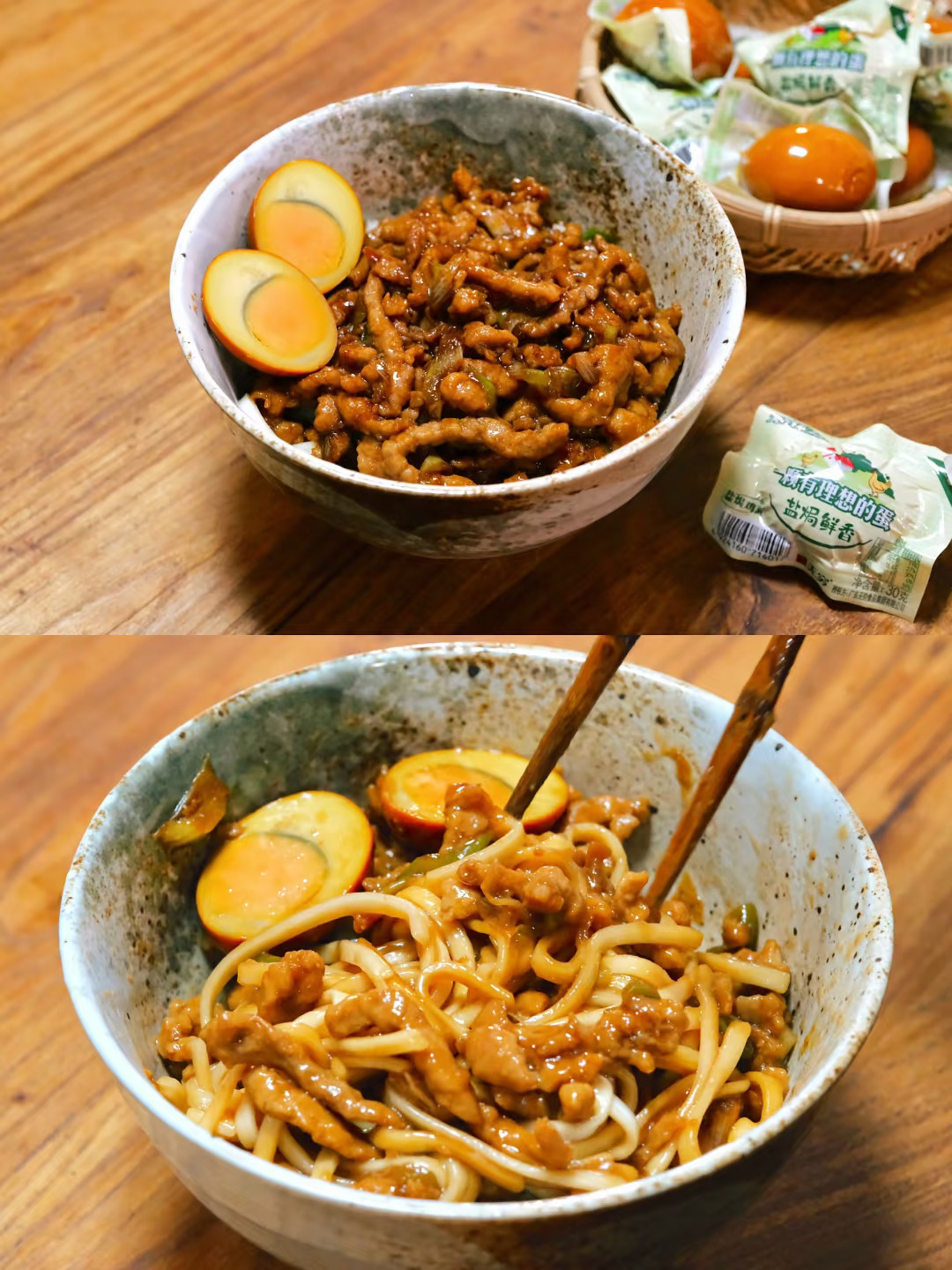 好吃的拌面一定要配上好吃的鸡蛋才行,卤鸡蛋稍微有点费时间,今天已经是快手面了,那么索性就偷个懒,就用老婆囤的无穷盐焗鸡蛋。老婆说别小看它,能比自己卤的还好吃,无穷的卤蛋只有AA 级新鲜度的鸡蛋才有资格卤制,从自己农场刚生的鸡蛋里挑最好的送到工厂加工,果真好东西都在源头上,所以这个鸡蛋就跟刚做的一样,新鲜又美味,好了,不说了,已经流口水了,先去炫面了。