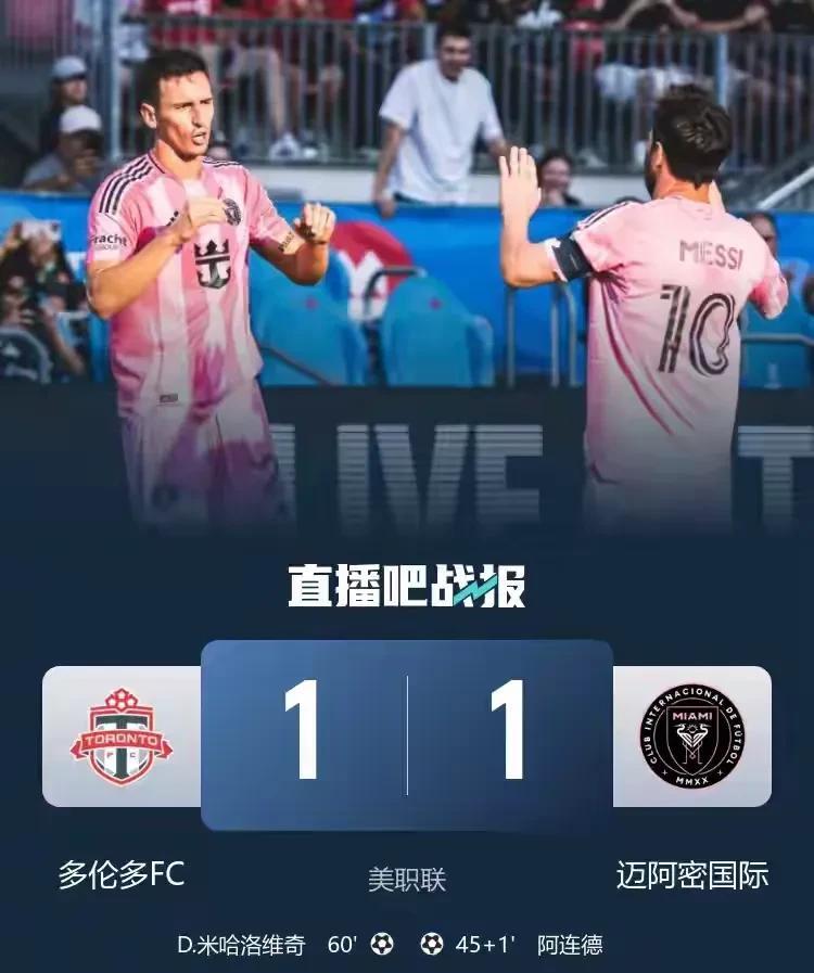 迈阿密国际客场战平,三连胜遭终结! 在北京时间9月28日进行的美职联常规赛中,迈阿密国际客场1-1战平多伦多FC,球队此前保持的三连胜势头遭到终结。此役过后,迈阿密国际在积分榜上仍居东部第三位。 比赛进程: 最终,双方1-1握手言和。尽管梅西在本场比赛中策动了多次有威胁的进攻,但对方门将的超常发挥阻止了迈阿密国际从客场带走三分。 #迈阿密国际# #迈阿密联赛# #迈阿密职业赛# #迈阿密创历史# #梅西# #足球#