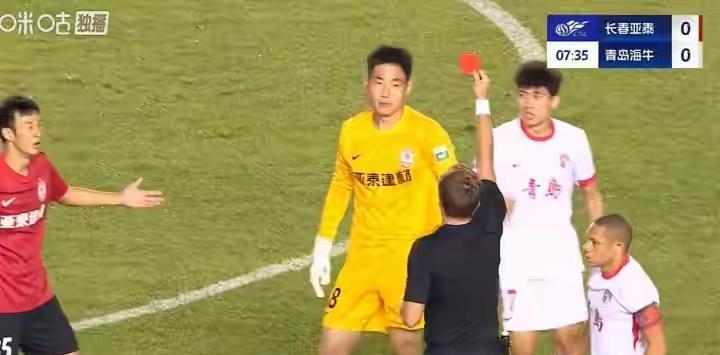哦哟,长春亚泰与青岛海牛的保级大战,亚泰门将王智峰开场8分钟就染红,12分钟中场