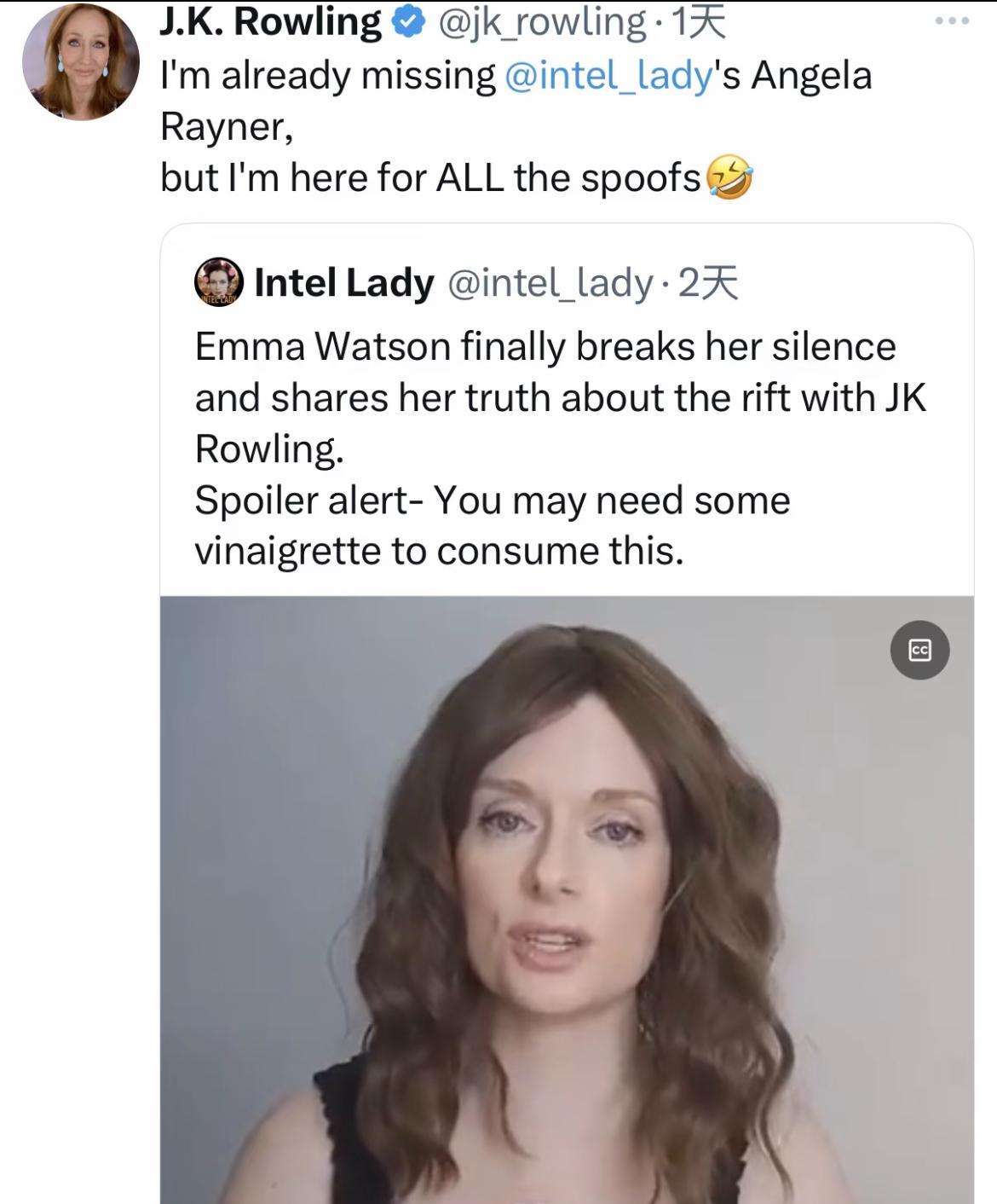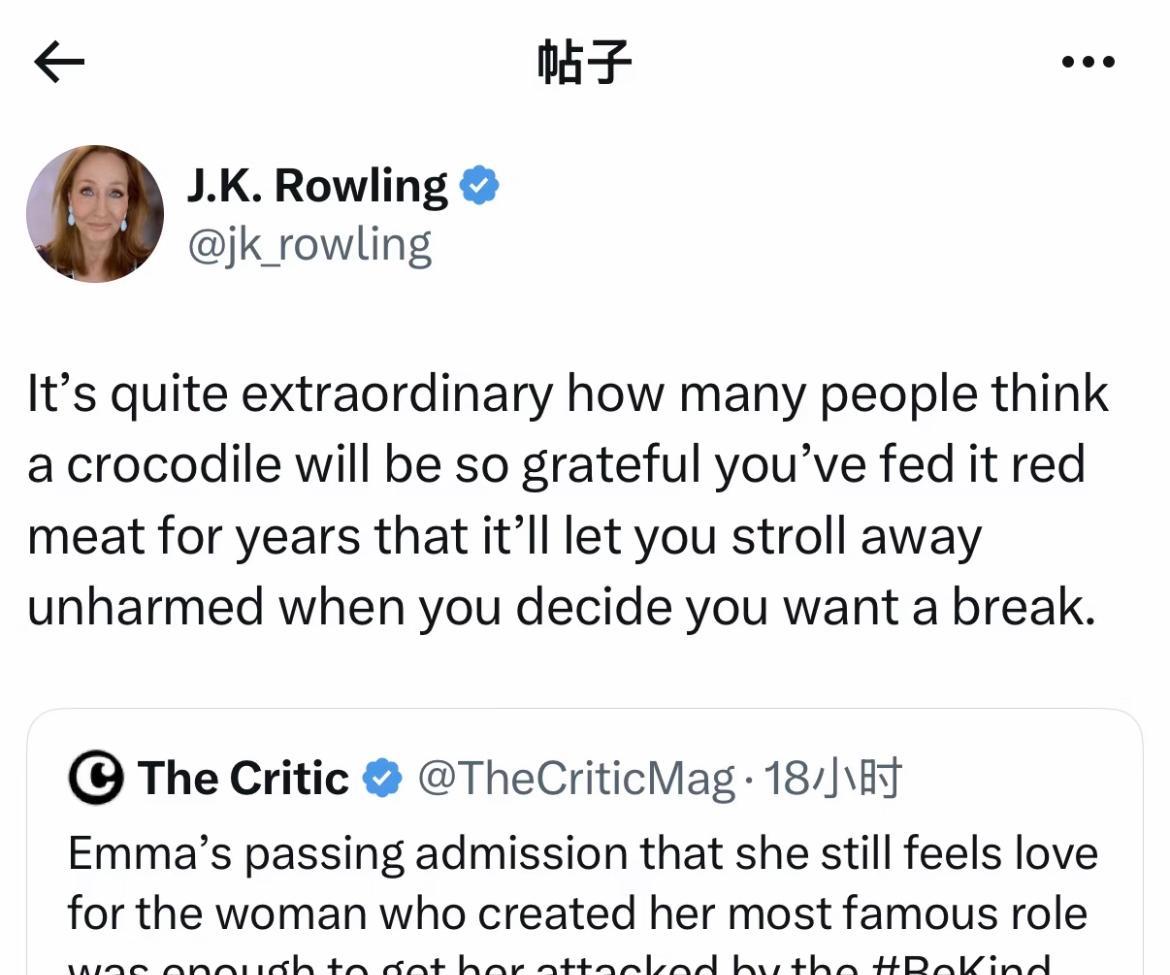 Jk罗琳回应艾玛沃森喊话。艾玛这件事真的把我对她的好感清0…[吃瓜群众] emm