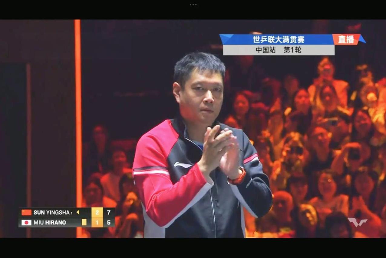 09月28日,孙颖莎的首场比赛,场外教练是邱贻可,有点不可思议,以前一直是马琳做