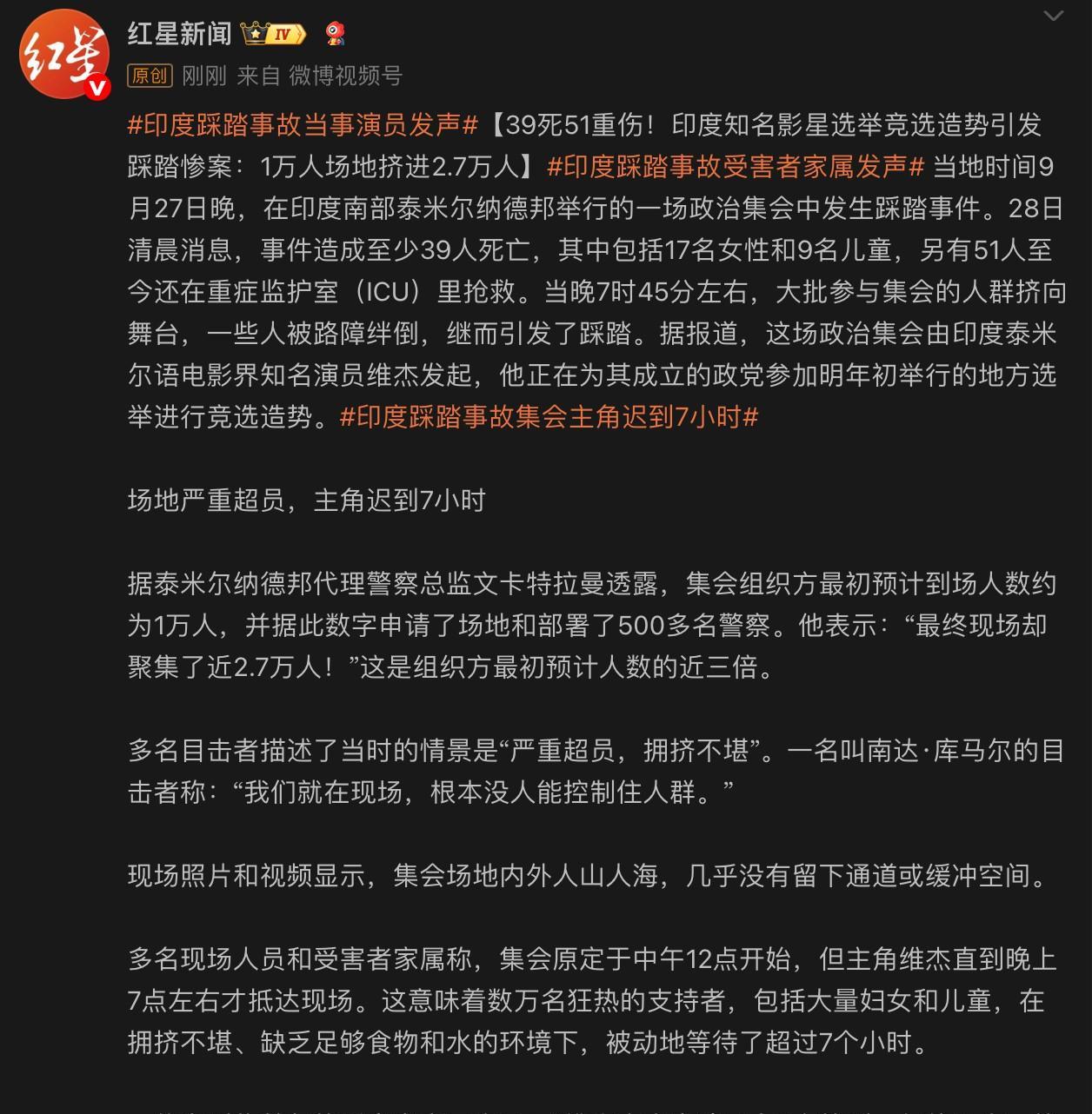 印度这次踩踏致多人死亡事件,忽然让我想起了印度人坐火车开挂的情形,很明显就是在有限的场景中挤进了太多的人造成的。这次也是为选举造势,本身就是天然的吸铁石,很多人都会前来围观。但偏偏还请了宝莱坞明星前来助阵,这就更加不可控制了。本来只能容纳1万人的场景直接来了2.7万人,这种就是惹祸的根苗了,稍微有个风吹草动就会出现意外!就看看照片上密密麻麻的人群,有点密集恐惧的人看了都会头皮发麻,很难想象挤在最中间的人是个什么感受! #万能生活指南#