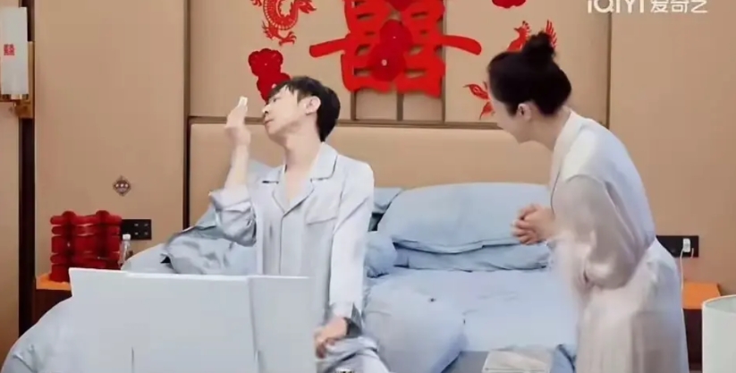 董璇和张维伊的新婚之夜,节目组的摄像镜头一直对着床头。