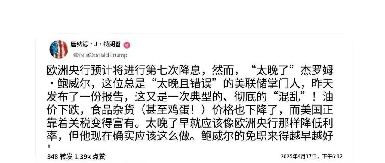 外行老板要解雇专业人才!他还真把自己当公司老总了! 美联储主席鲍威尔是老特第一个