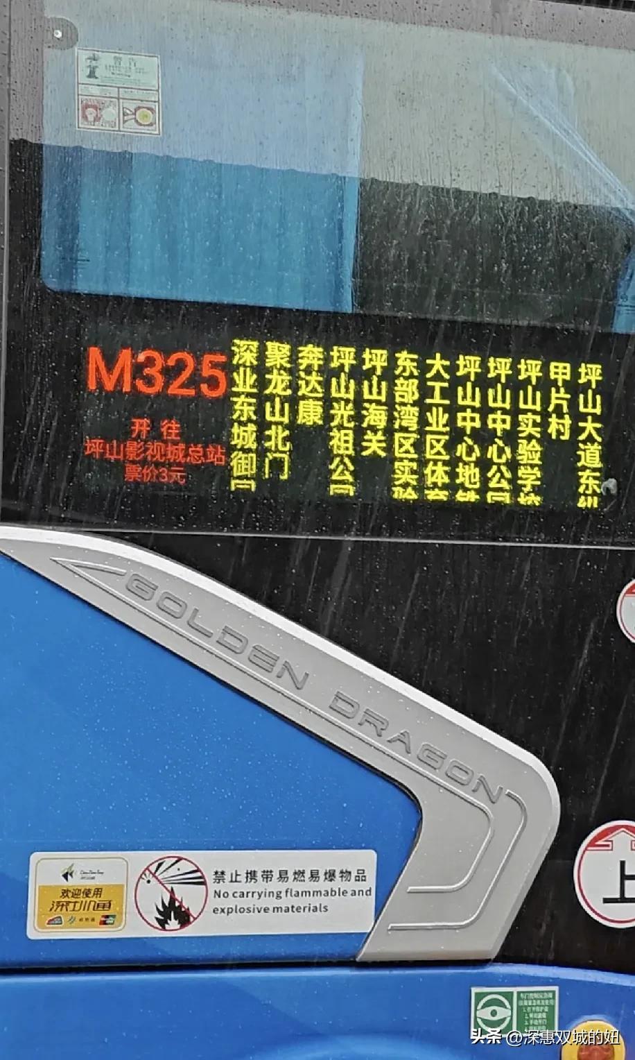 台风天,坐深圳公交车接娃。 今天台风天,惠州大亚湾停课,深圳没有停课,惠州大亚湾公交车全停,深圳公交车没有停,所以坐深圳公交出门接娃。 在惠州大亚湾家门口的公交站台,可以坐深圳公交车去深圳。台风天,大风大雨,不骑车不开车,就坐公交了。 还好,家门口就能坐上深圳M325,几个站就能到女儿的学校附近,就是等公交车的时间要掐准,用APP查看公交车什么时候到站,就出门。 所以,很精准一出门,就能坐上深圳公交车,然后10来分钟到女儿学校附近,走路去学校接她。 今天大风大雨,学校允许到校内去接孩子,真不错,接上女儿就往公交站台走,在站台等一会,坐上深圳公交车回惠州大亚湾了。 还是比较顺利的,虽然大风大雨,还好没怎么淋湿,多亏了深圳公交车。[赞]记录我的2025