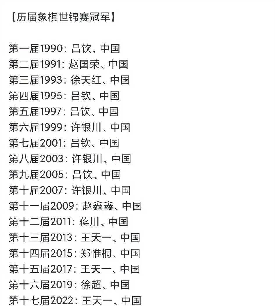 象棋世锦赛,中国首次丢冠! 中国队靠着05后小将尹昇拿到了男子象棋的亚军,冠军被越南老将赖理兄摘得,领奖台上的赖理兄没有准备国旗,估计也没想到中国象棋高手们被大面积的禁赛让他自己捡了便宜。 赖理兄与曾是“中国象棋第一人”的王天一是队友,赖理兄曾经在中国象棋甲级联赛打过比赛,算得上是外援,是越南的“王天一”,实力也是非常强悍,可惜的是王天一因为“录音门”被判两年九个月,不能与越南象棋第一人一争高下。 象棋起源中国,中国连续垄断了18届世锦赛,今年却翻了船,象棋都能被外协抢走冠军,颇为讽刺。 其实中国象棋早就该警惕了,越南玩象棋的人数非常庞大,至少在两千万以上,其中不少高手来中国学习。除了赖理兄参加中国象甲联赛历练,阮成保每年都到中国集训学习,他们不断学习我们的战术和理念,而我们自己的那些大师们却“丑闻缠身”。
